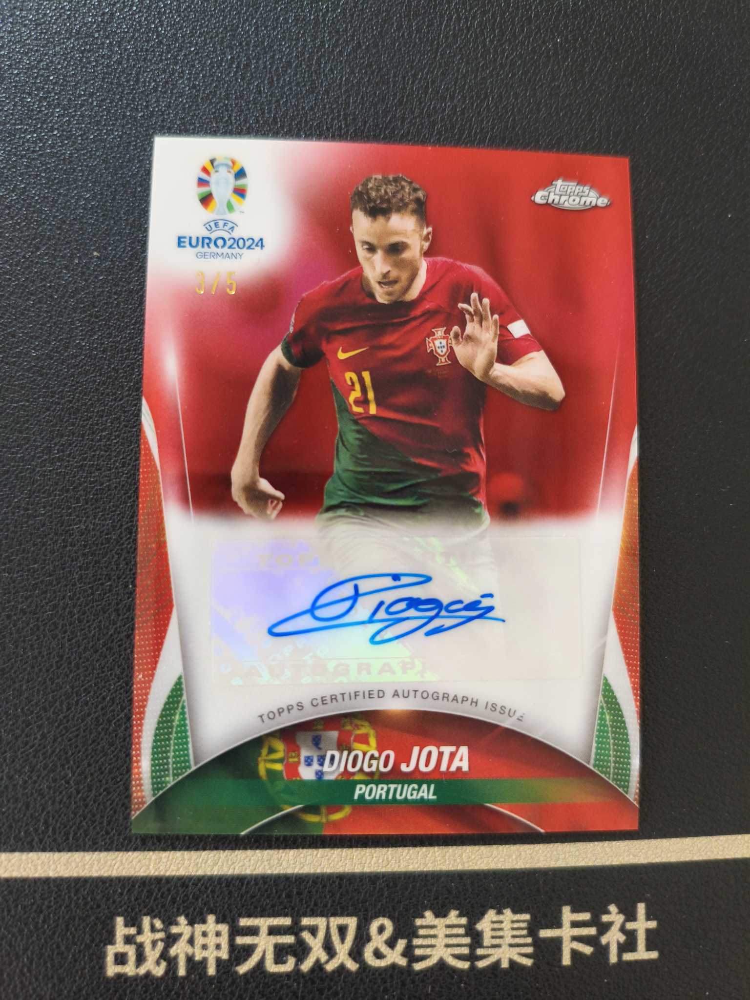 2024 Topps Chrome UEFA Euro Diogo Jota 迭戈 若塔 签字 红折签 欧洲杯 3/5编 超低编 colormatch 葡萄牙 战神无双拍卡 (#5.24优才)