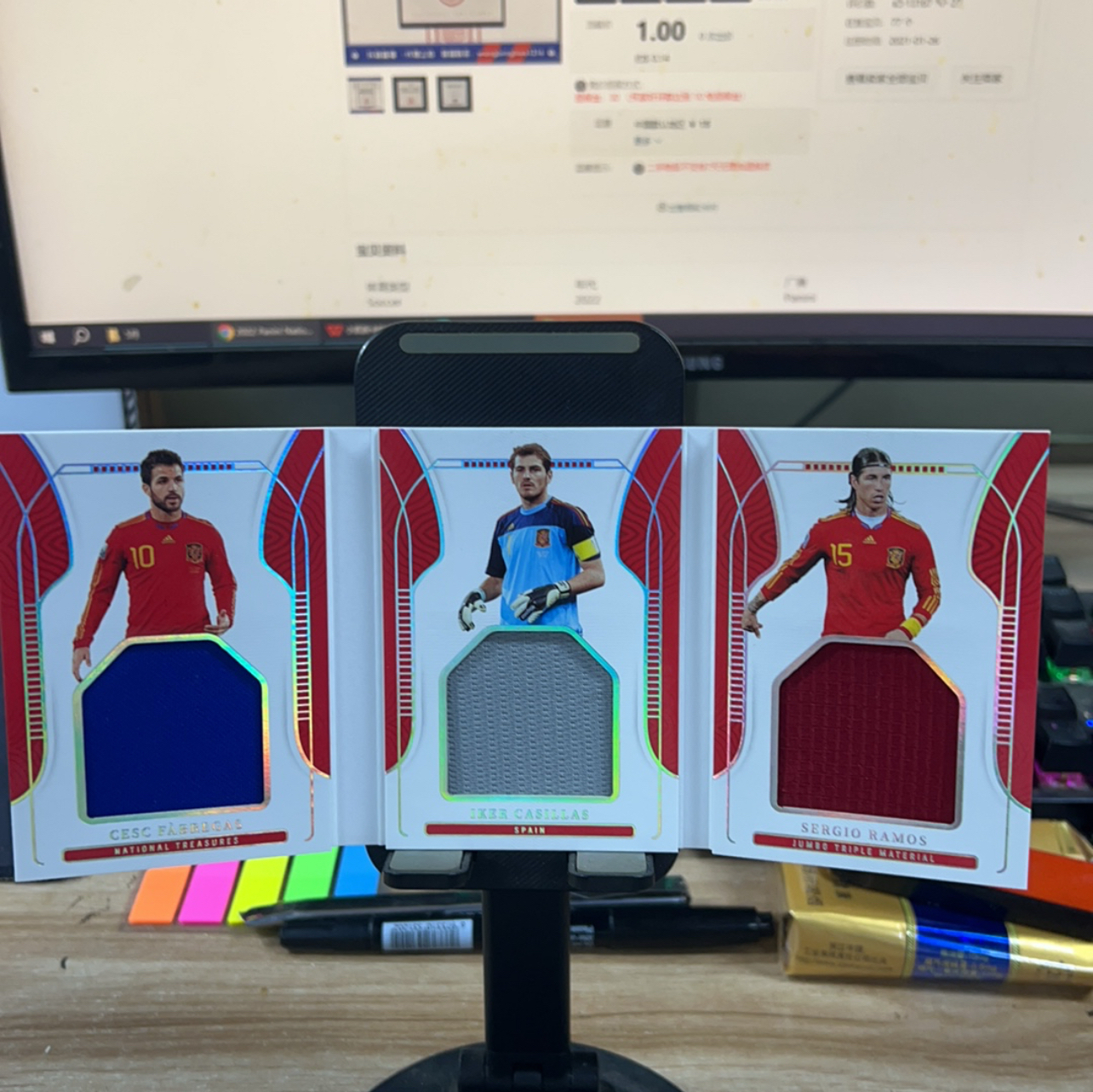 2022 Panini National Treasures Iker Casillas 卡西利亚斯&法布雷加斯&拉莫斯 36/49编 国宝 三人球衣物料 小凯代拍(乔治)实卡超美 收藏投资 卡品如图