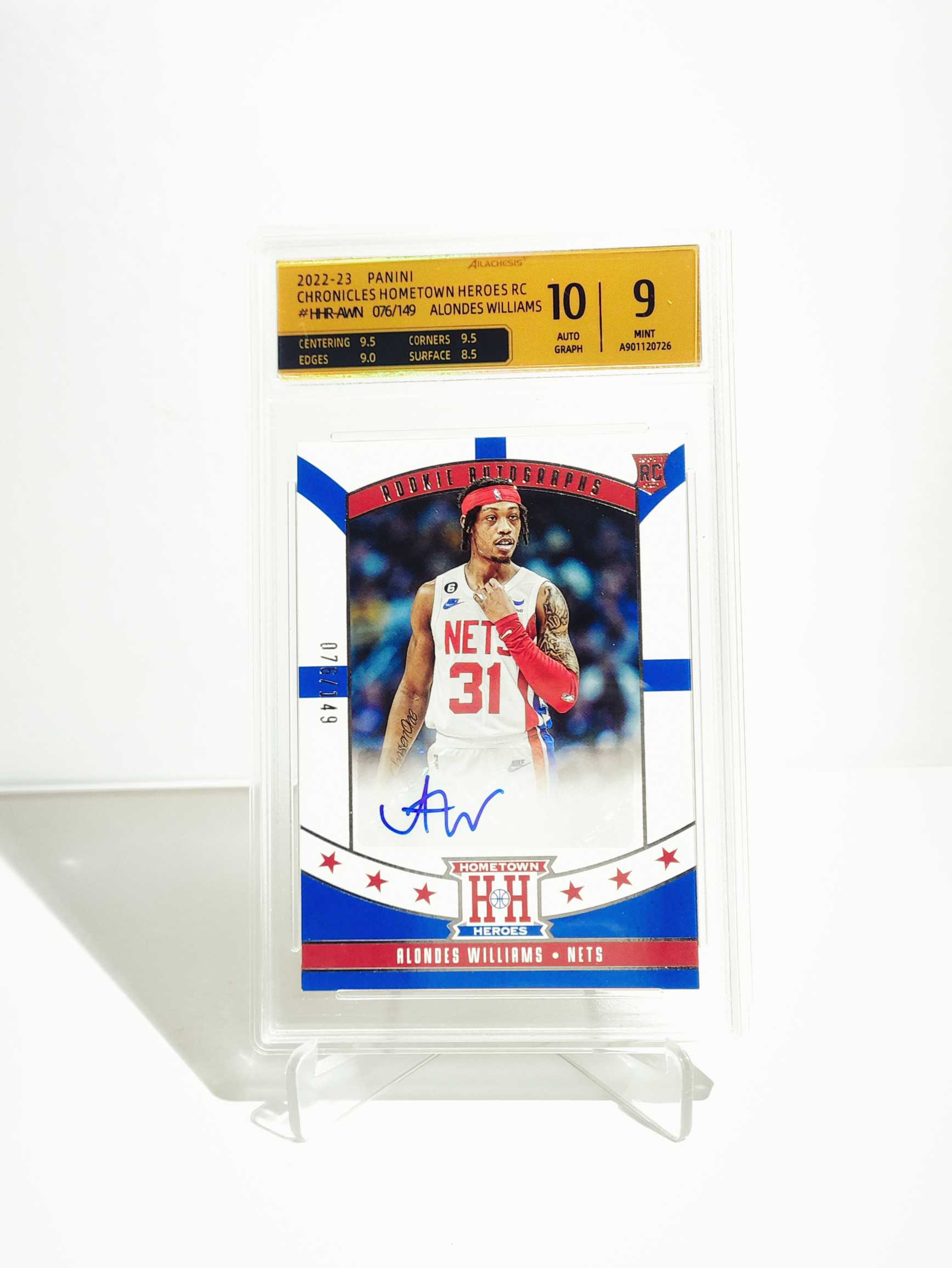 2022-23 Panini - alondes williams RC 篮网 新秀RC 阿隆 德斯威廉姆斯 亲签 签字卡 完美字迹 限量149编 评级卡实卡精美 投资收藏严评精选 扫码可查询多张可累计