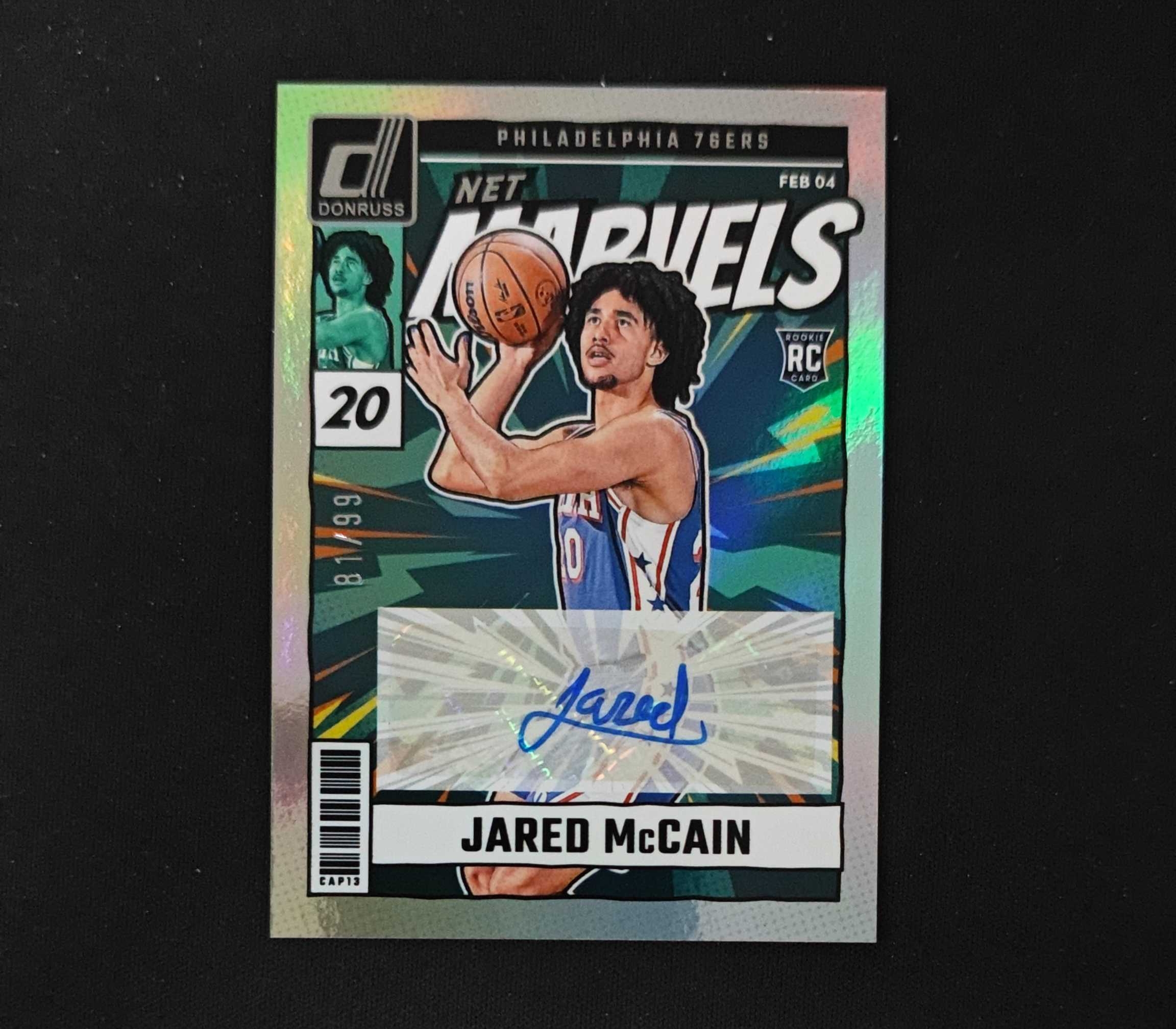 2024-25 Panini Donruss Jared McCain RC 【SC拍卖】杜蕾斯 新秀 火箭 麦凯恩 签字 99编 漫威特卡 银折 收藏必备 (夜宵吃什么)
