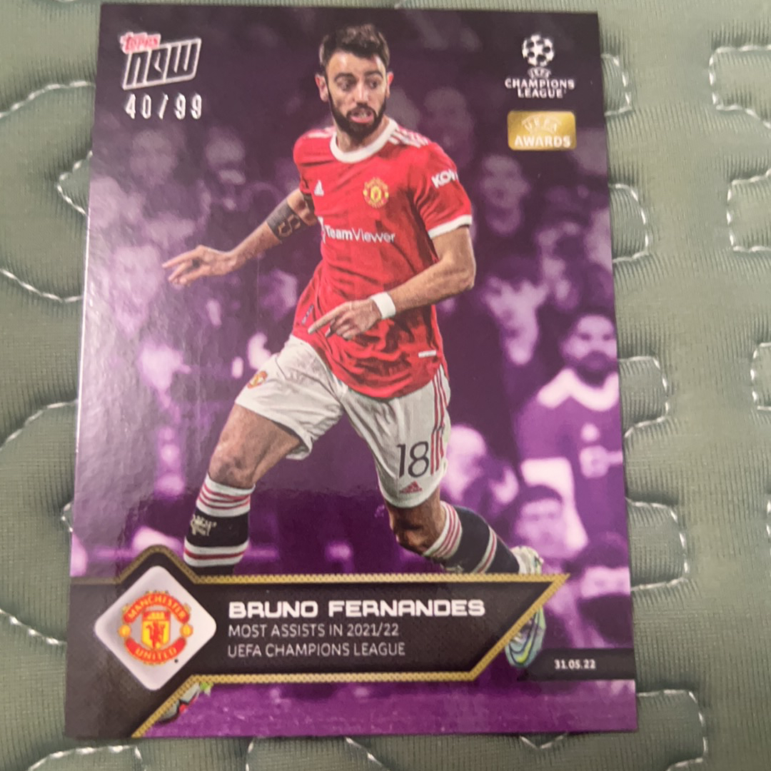 2022 Topps now Bruno Fernandes 【小天才拍卖】topps now系列 2021-22赛季欧冠助攻王 曼联 布鲁诺费尔南德斯 B费 99编紫折