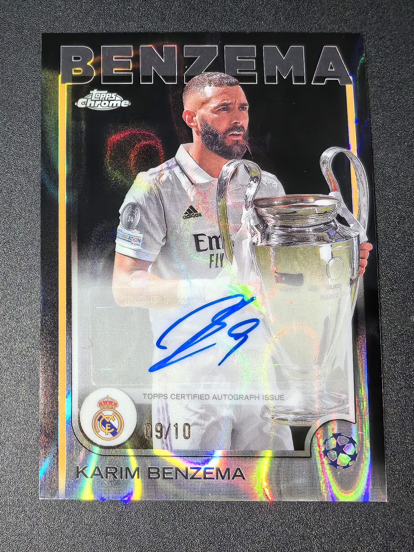 2025 Topps Chrome Karim Benzema 【麦考拍卖】m 本泽马 皇马 real madrid 欧冠tc 低编限量9/10编 同背号 黑熔岩折射 捧杯 签字卡 签名卡 微瑕如图