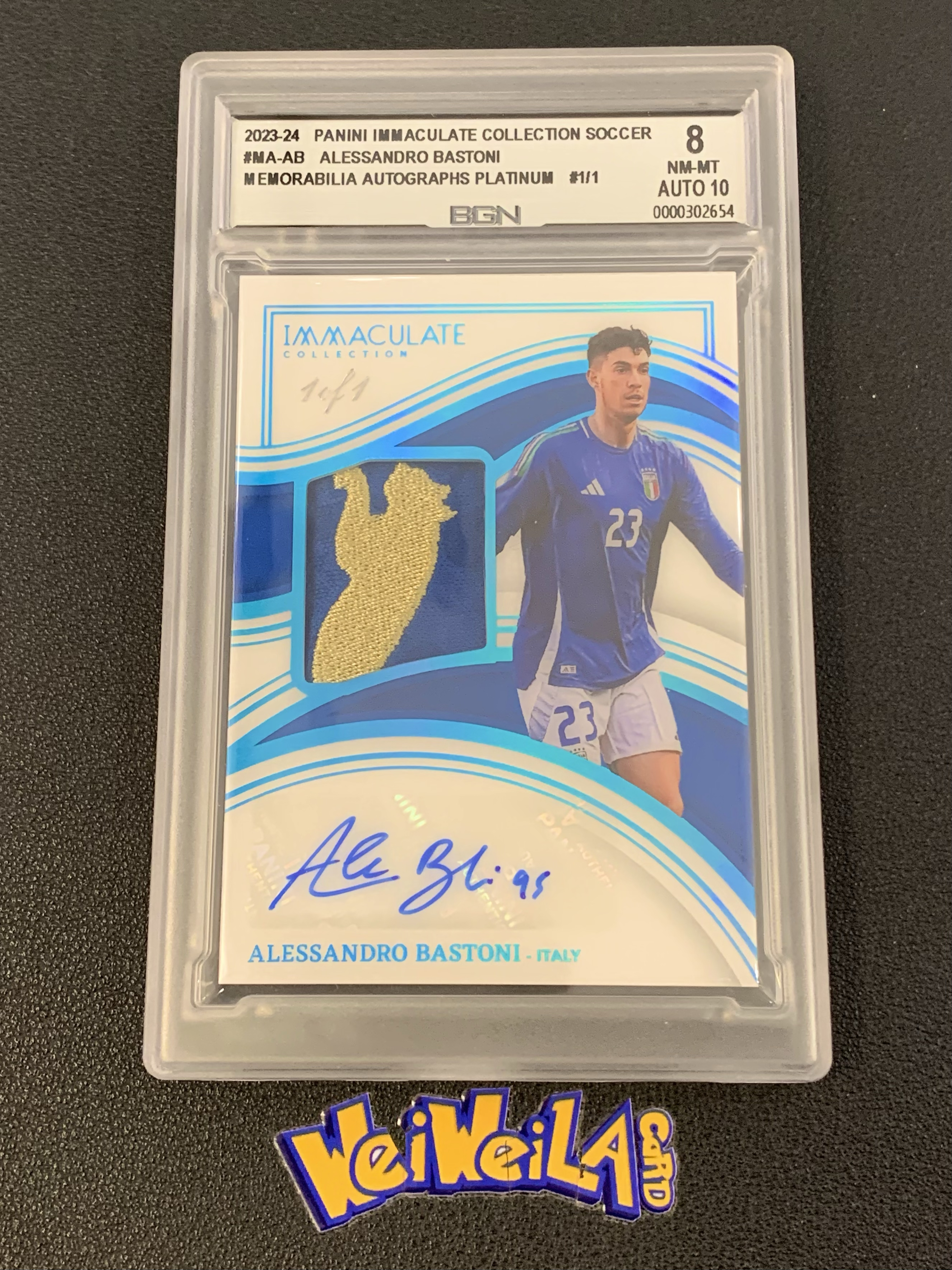 【微微辣拍卖】MM777 2023-24 Immaculate Alessandro Bastoni 球衣 彪马logo patch刺绣 签字 湖水蓝1/1 一编一 巴斯托尼 意大利 bgn8/10分