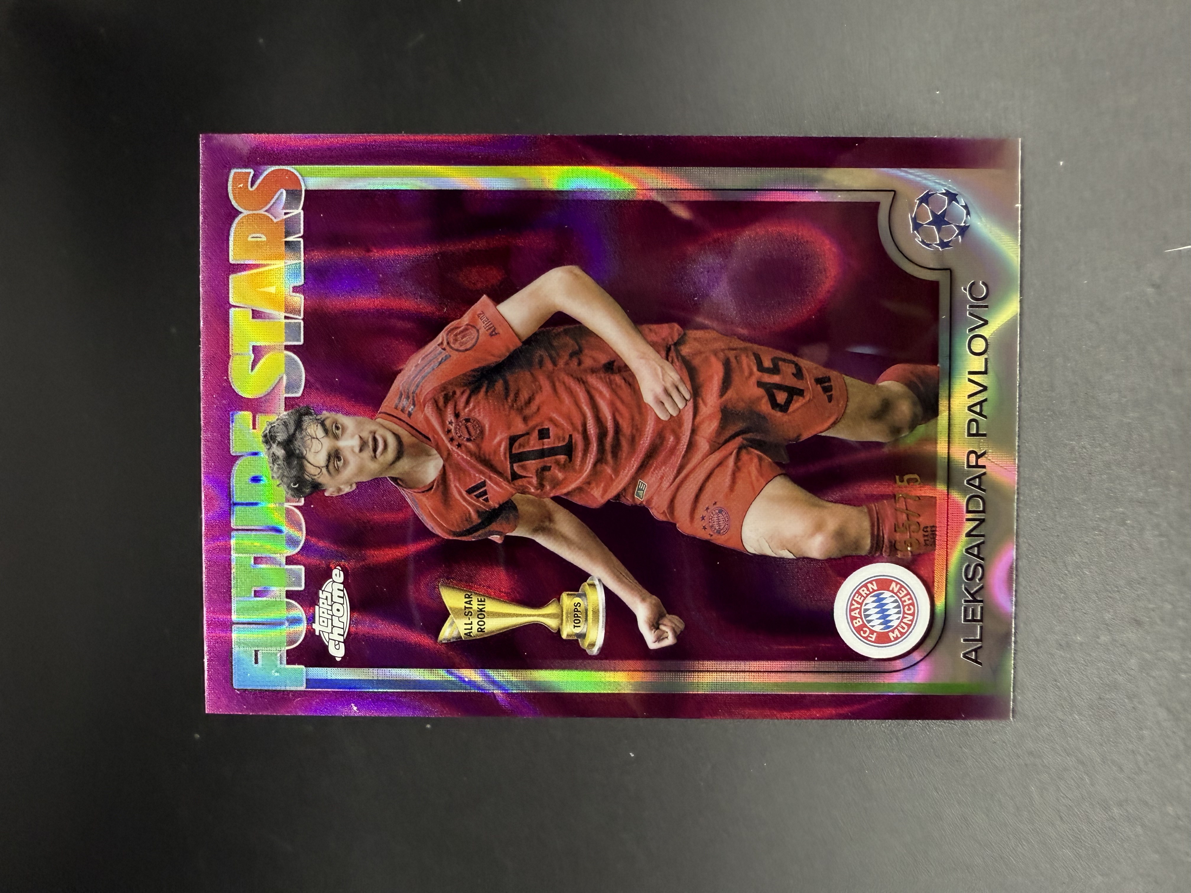 2025 Topps Chrome Aleksandar Pavlovic 【湖水蓝拍卖】帕夫洛维奇 拜仁慕尼黑 TC 欧冠 未来之星 品红熔岩折 折射 75编 拍前请阅读描述 ZXD