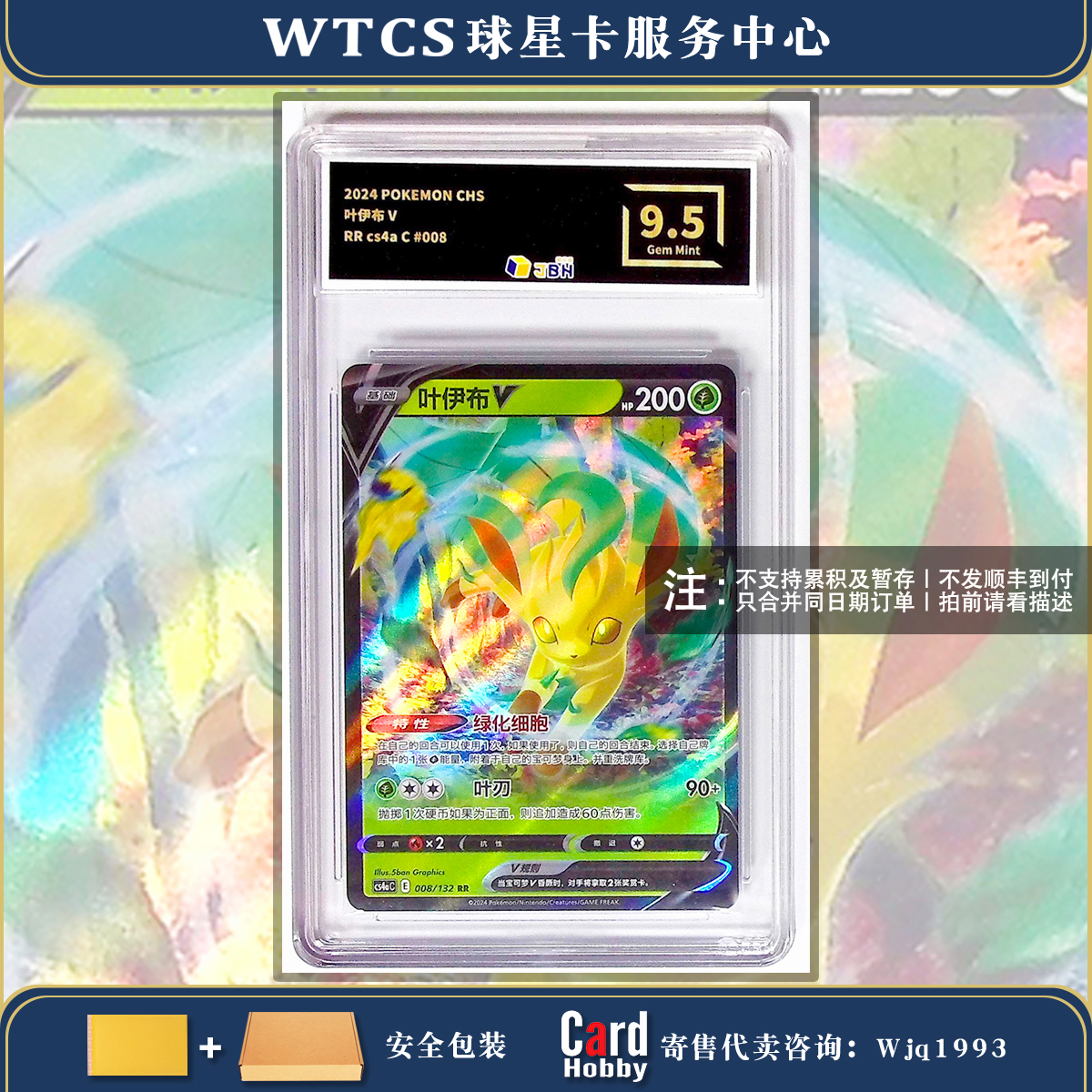 『Wjack拍卖』2024 Pokemon PTCG CHS 宝可梦 中文 简中 CS4a 九彩汇聚 朋 叶伊布 叶精灵 リーフィア Leafeon V RR 闪卡 JBH9.5分评级卡 品相很好 艺术限定标签 MZ89081