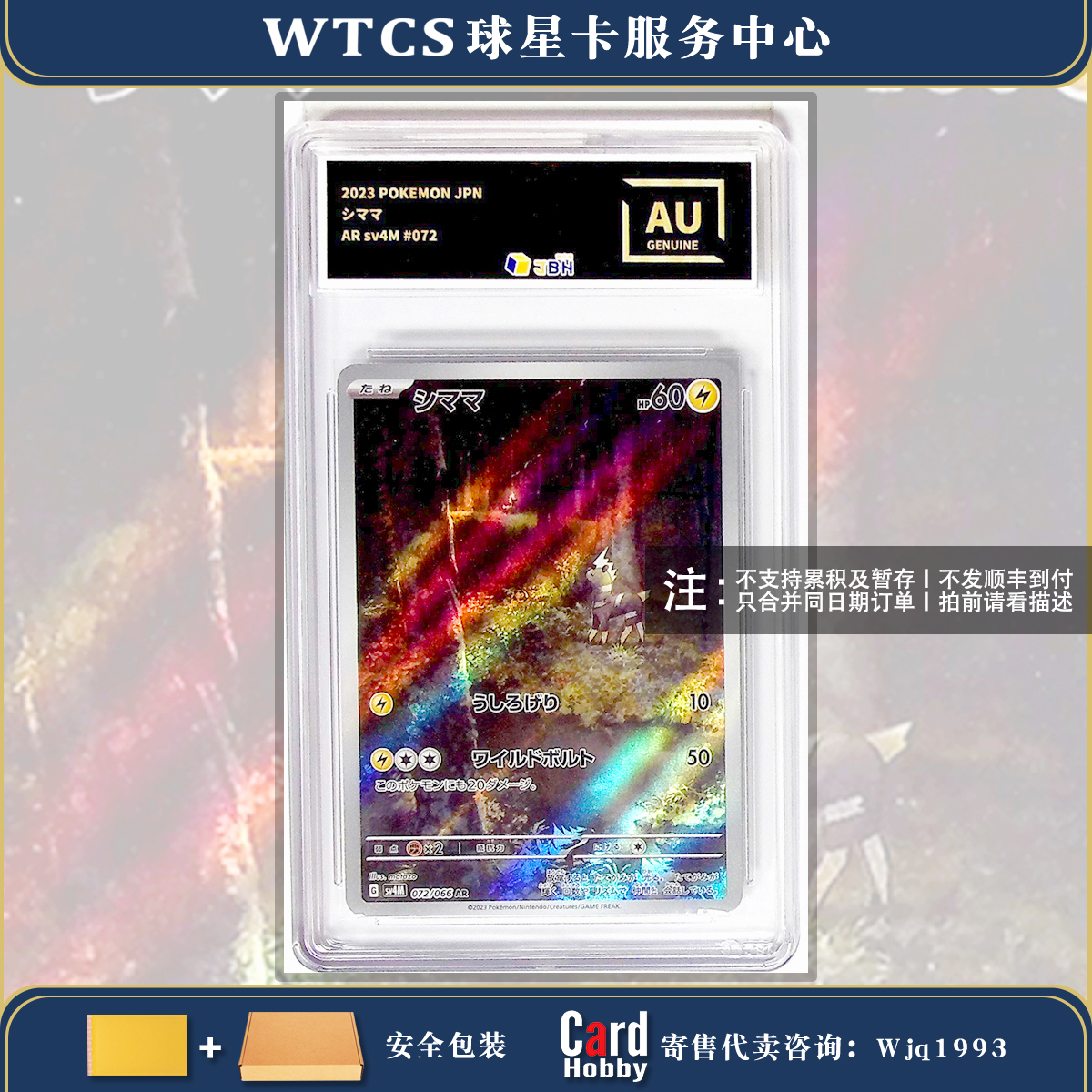 『Wjack拍卖』2023 Pokemon PTCG JPN 宝可梦 日文 日版 SV4M 未来的一闪 斑斑马 シママ AR Art Rare 艺术闪卡 JBH评级卡 鉴定为真 艺术限定标签 MZ89106