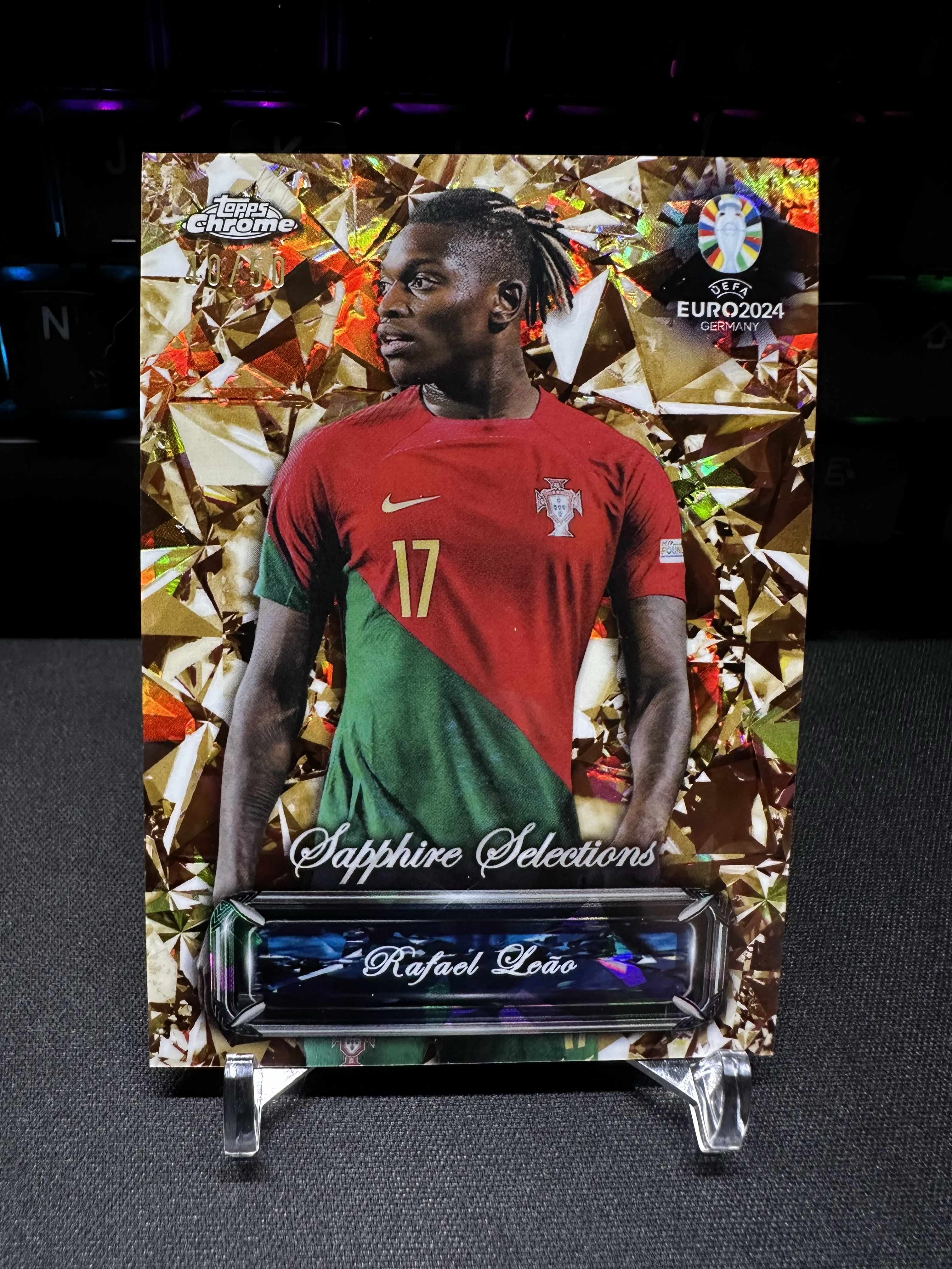 2024 Topps Chrome欧洲杯蓝宝石 Rafael Leao 莱奥10/50编 金碎冰 大比例精选 葡萄牙C罗队友 AC米兰主力核心 卡品微瑕如图 欧洲杯元年收藏凑套