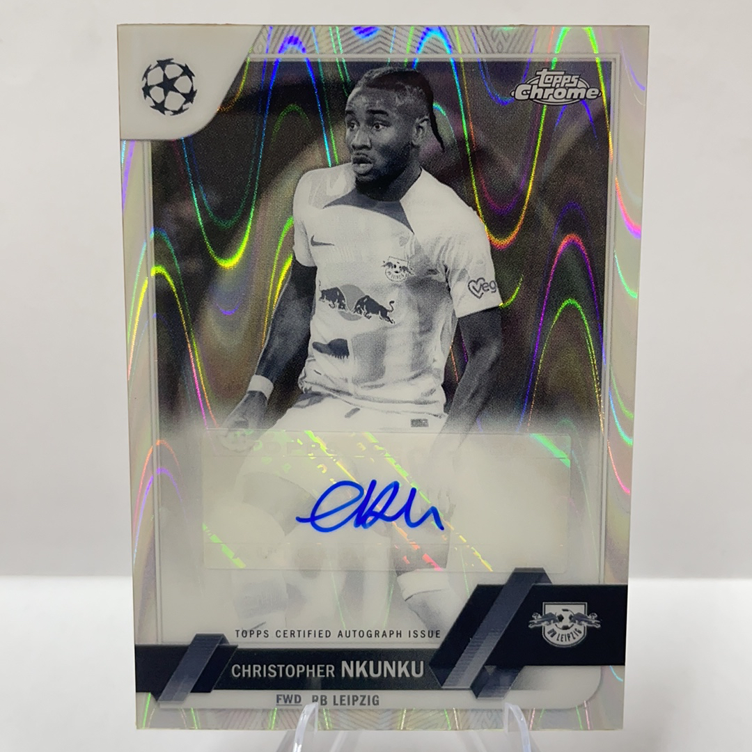2023-24 Topps Chrome Christopher Nkunku 克里斯托弗 恩昆库 切尔西 法国🇫🇷 莱比锡红牛 锋线大腿 欧冠 TC 黑白波纹折 签字 折射 卡品如图