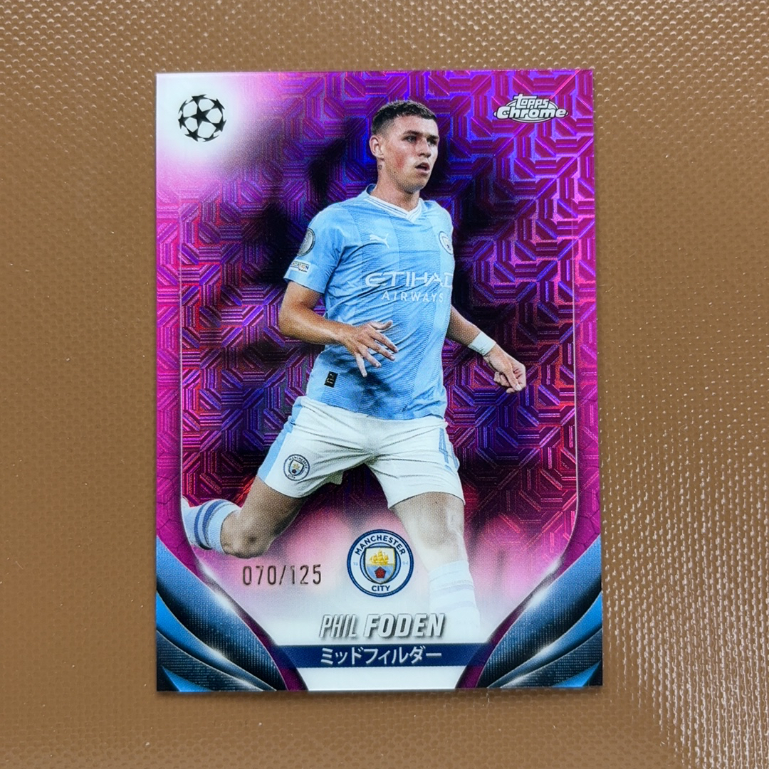 【佳佳代拍】2024 Topps Chrome 欧冠 日版 樱花 Phil Foden 曼城 英格兰 菲尔福登 070/125编 粉迷宫折 卡品如图 收藏必备(星月)