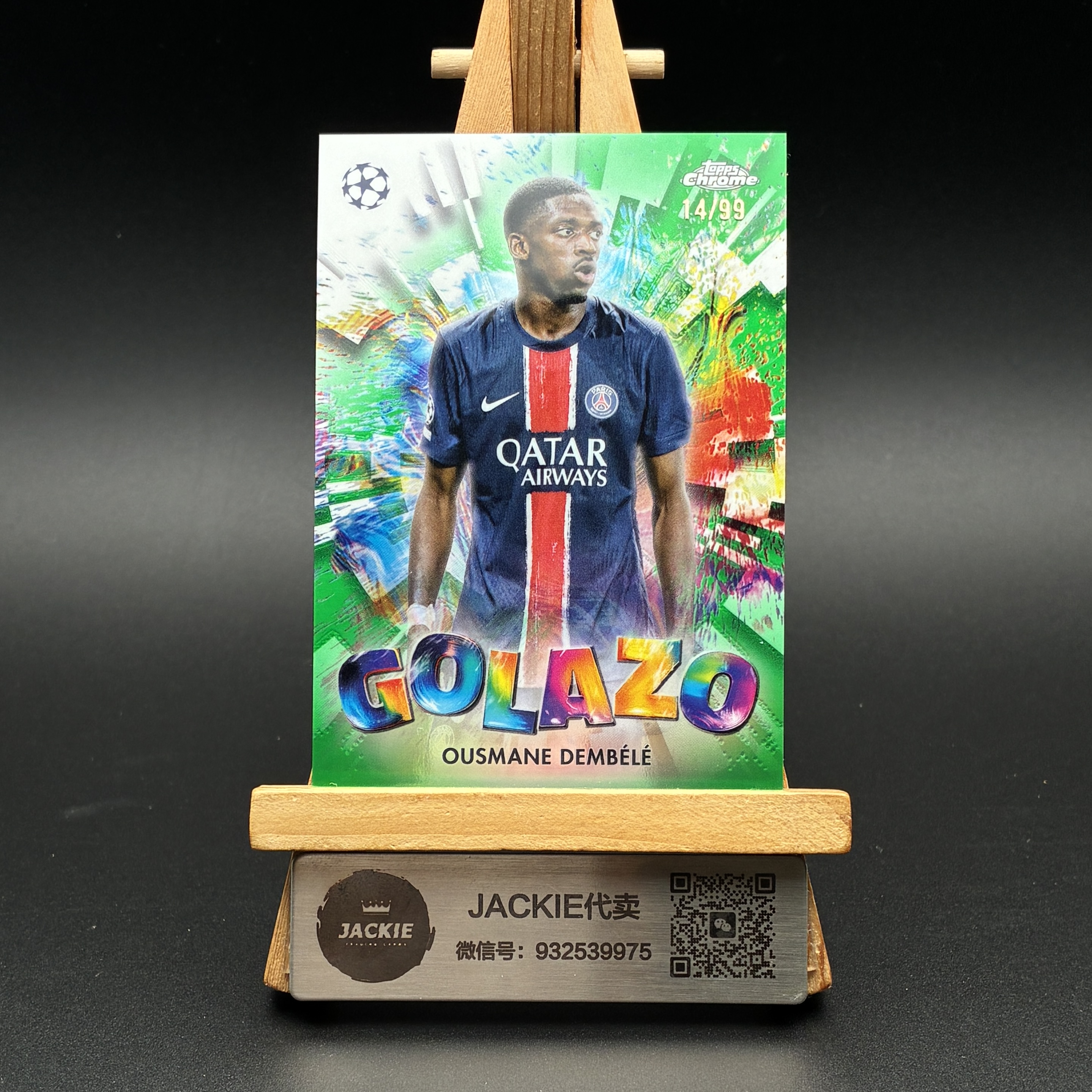 【JACKIE代卖】 2024-25 Topps Chrome Ousmane Dembélé 欧冠 TC 巴黎 登贝莱 golazo特卡 绿折 14/99编 瑕疵见图(贤)