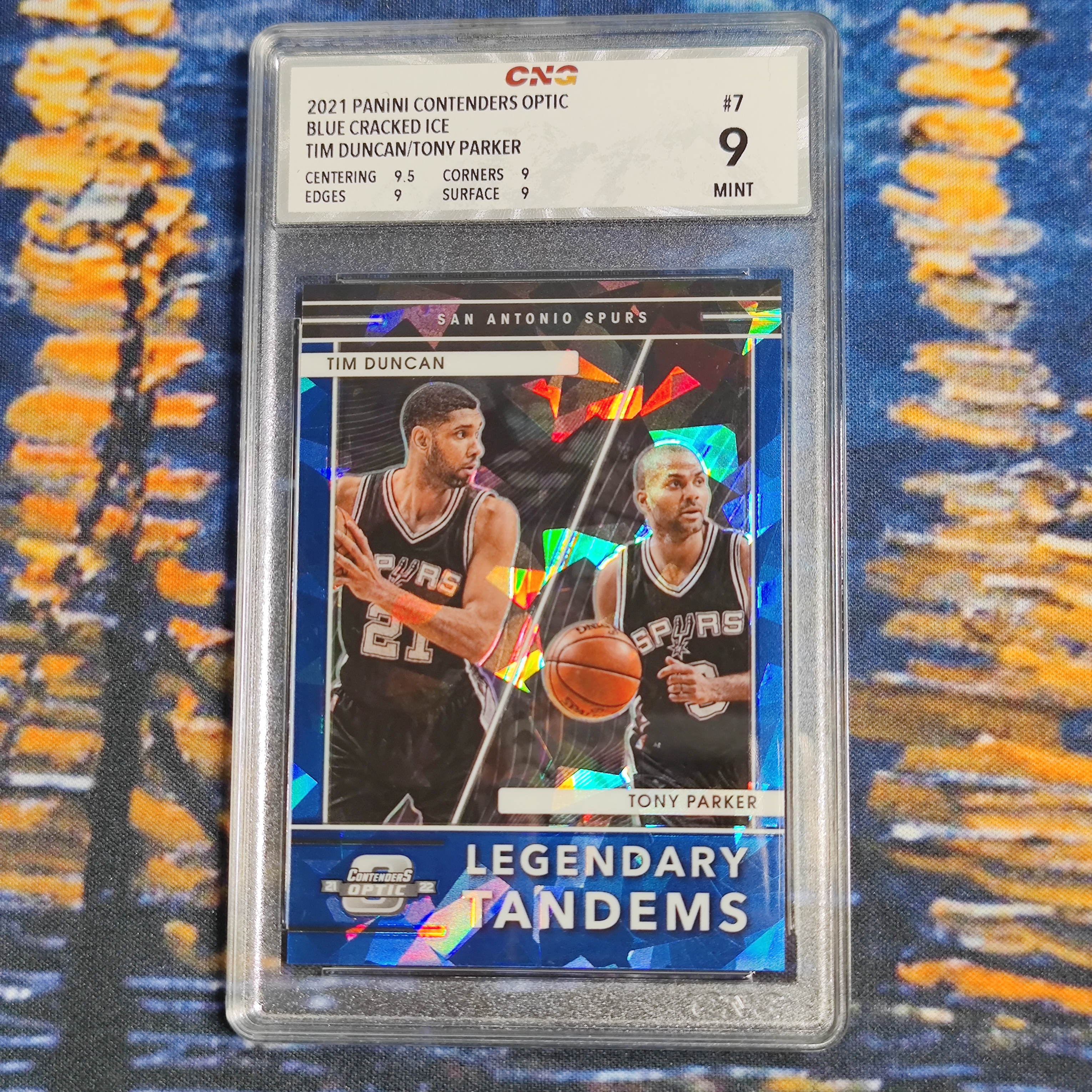 2021-22 Panini Contenders Tim Duncan 球票系列 legendary 双人特卡 75编 评级 cng9分 蒂姆 邓肯 帕克 蓝碎冰 折射 实卡好看 收藏必备可累计一个月