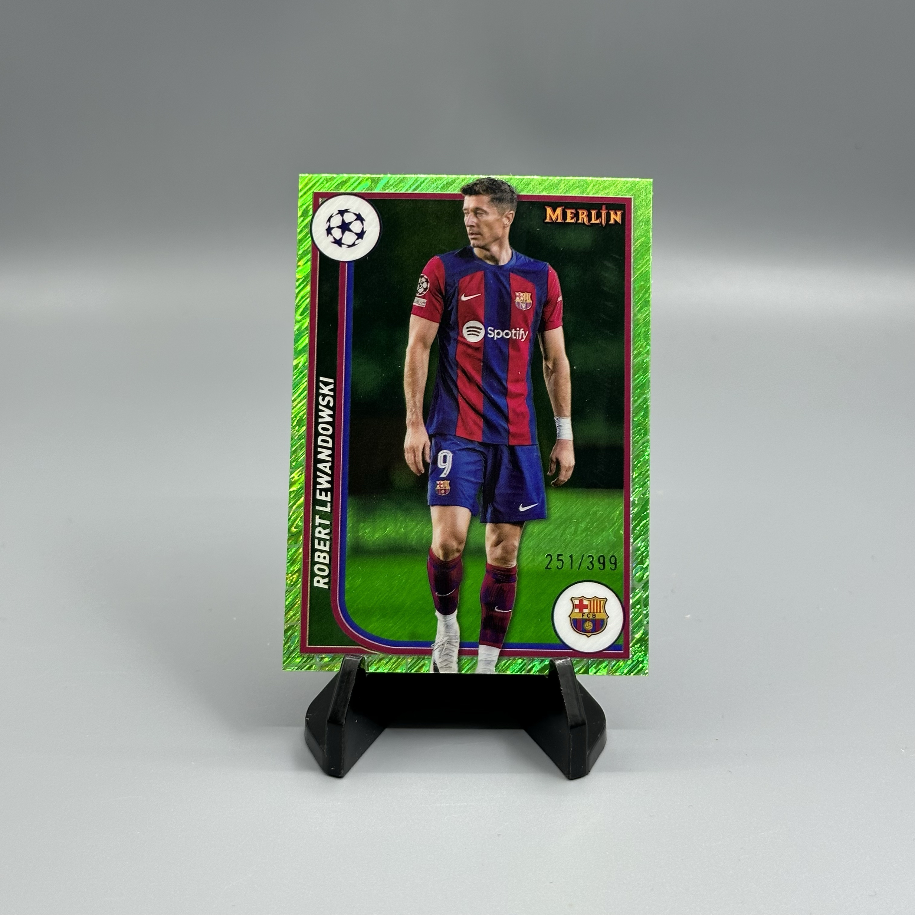 2022-23 Topps Merlin chrome Robert Lewandowksi 欧冠欧战梅林 莱万多夫斯基 巴塞罗那 巴萨 251/399编 绿波纹 折射 微瑕卡品如图 赵赵【UD拍卖】