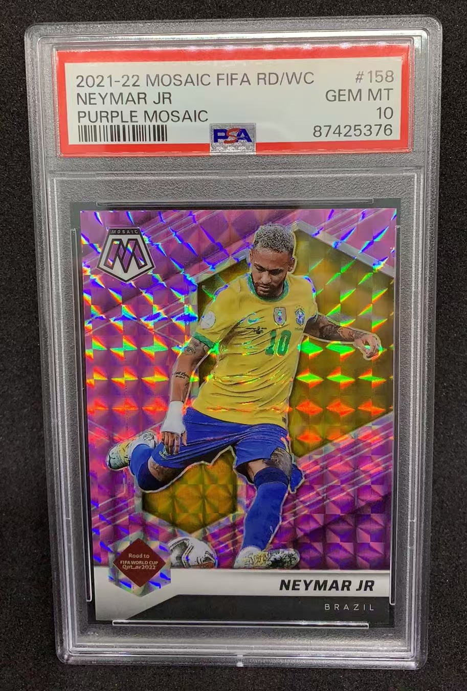 #298【北屿代卖】 2021-22 MOSAIC 马赛克系列 足球世界杯 NEYMAR JR 内马尔 马儿 49编 PURPLE MOSAIC 粉马赛克折 折射 巴西国家队 PSA10 卡品如图