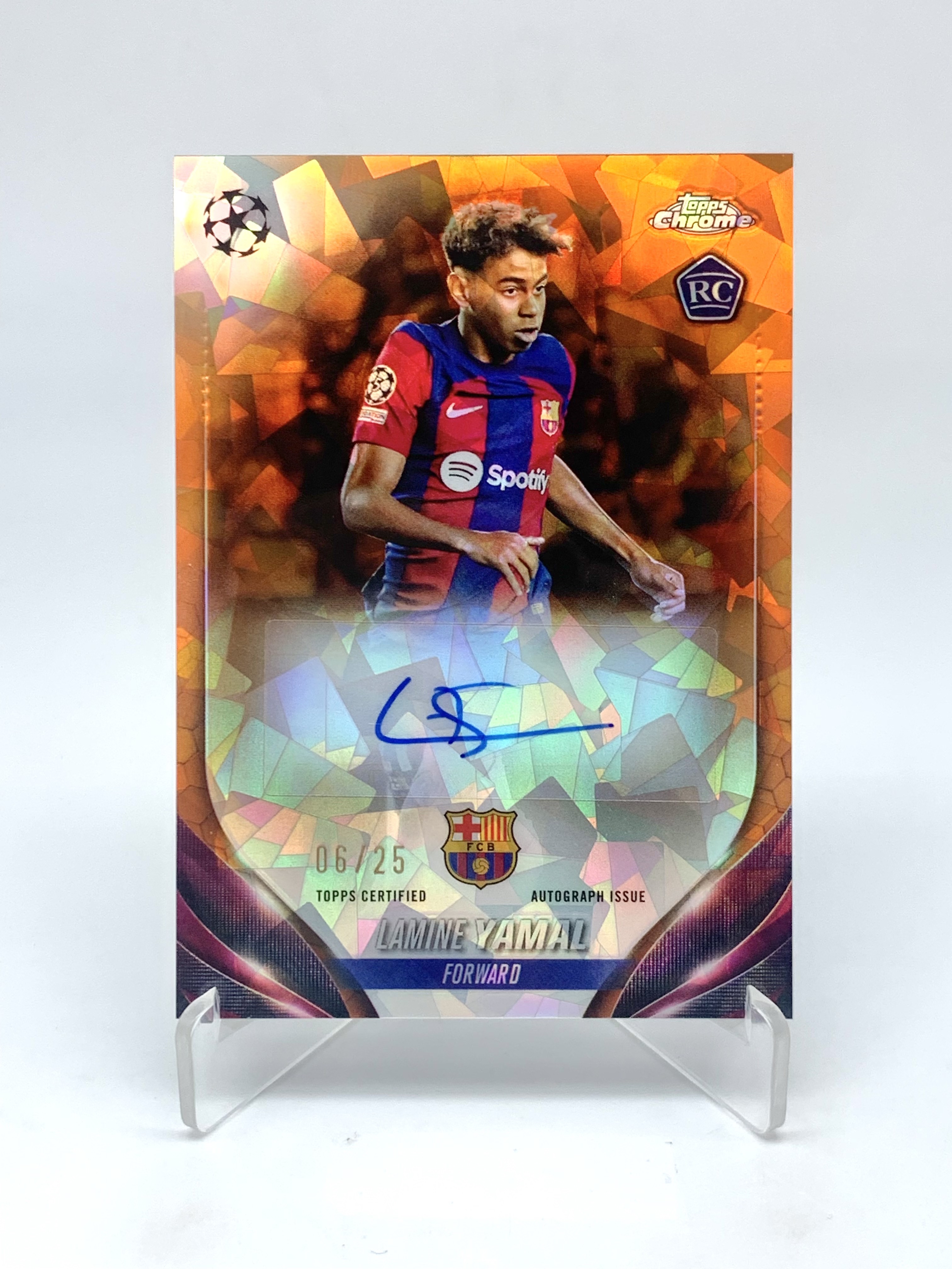 2023-24 Topps Chrome Lamine Yamal RC 欧冠蓝宝石 亚马尔 06/25编 橙碎冰折 签字 完美签 大热新秀 巴塞罗那 巴萨新10号 微瑕如图 持续疯涨! WG007