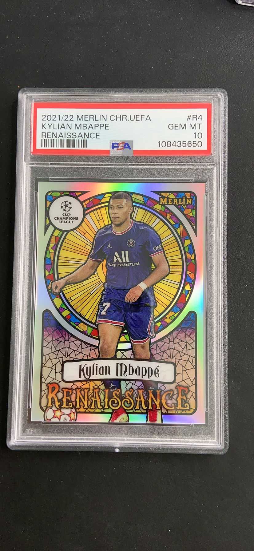 2021-22 Topps Merlin chrome Kylian Mbappe 【肥猫代卖】H01B 梅林 巴黎圣日耳曼 姆巴佩 文艺复兴 教堂特卡 大比例SP 银折 PSA评级卡 10分 收藏必备