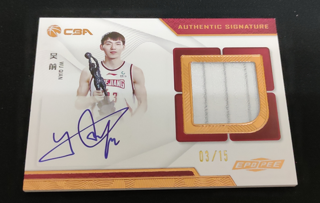 2021 中体卡业 CBA EPOPEE 史诗 姜宇星 CBA 浙江稠州 吴前 3/15编 签字 卡签 横版 进阶球衣实物签字 厚卡白边翘脚 介意勿拍