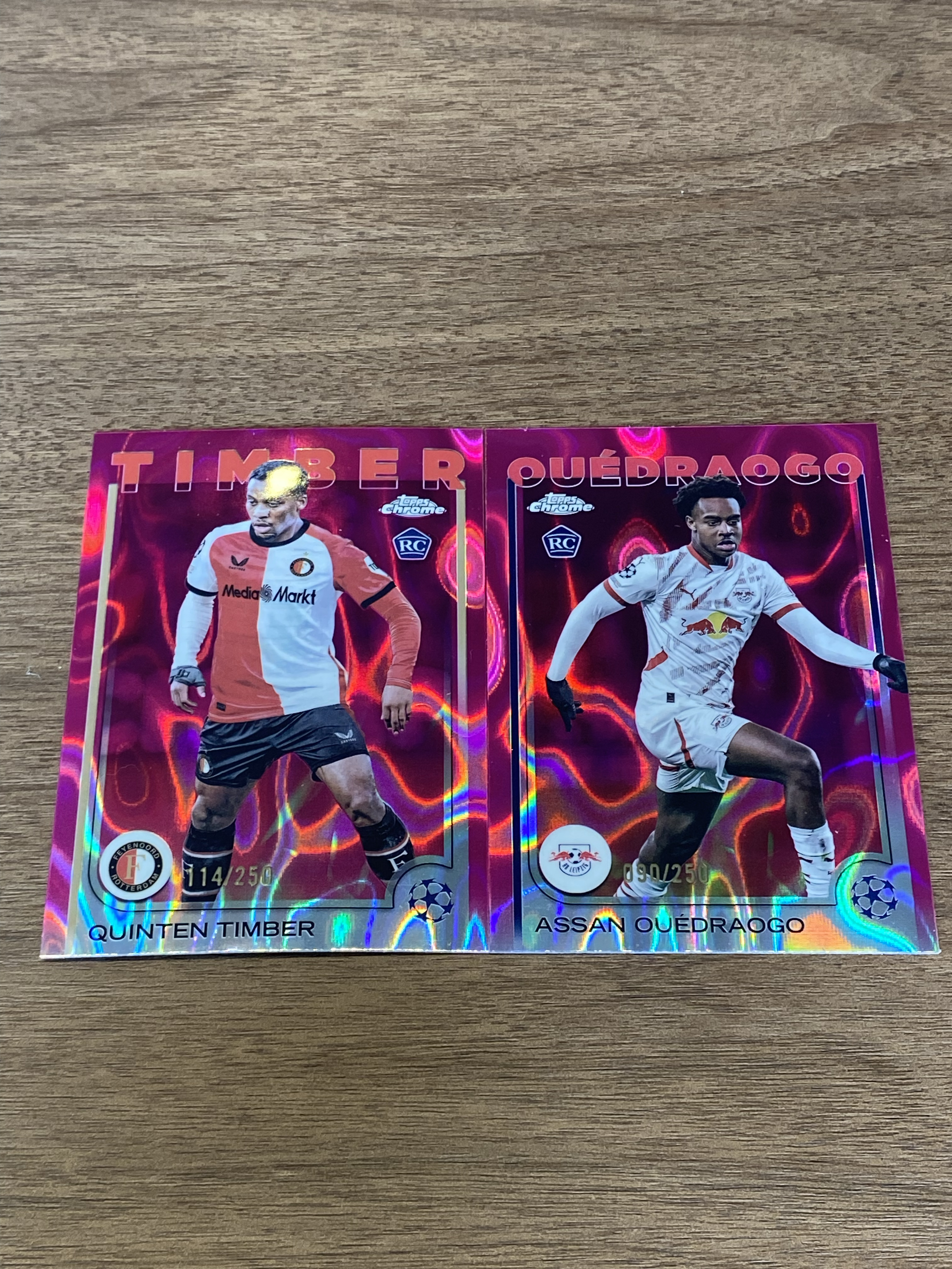 2024-25 Topps Chrome timber Chrome 费耶诺德 廷贝尔 莱比锡红牛 奥德劳戈 2张新秀 250编 轻印 拍卡请看描述 「蝴蝶」