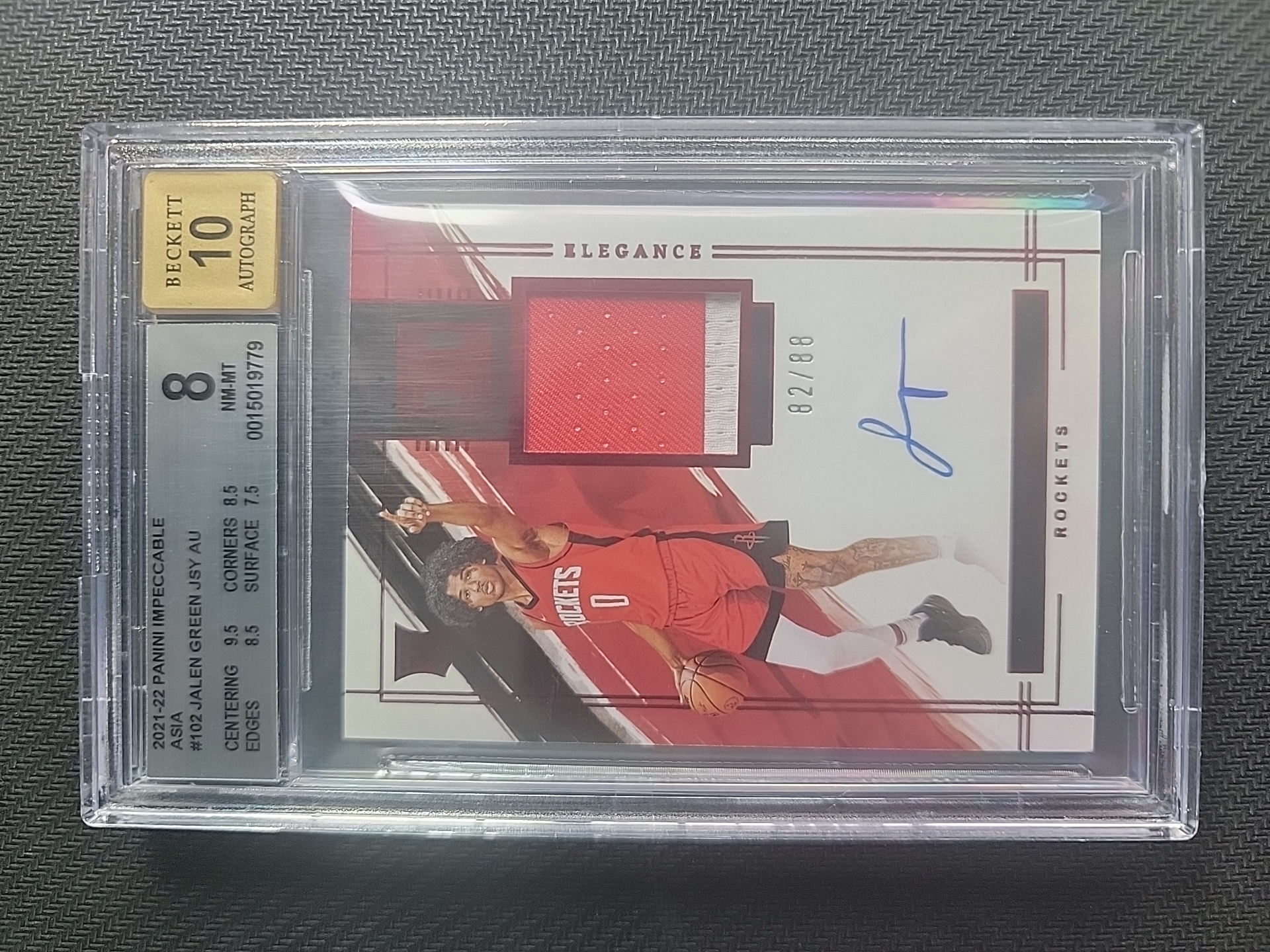 2021-22 Panini Impeccable Jalen Green RC 卡少爷卡社 小真金 评级卡 BGS 8 签字10 杰伦 格林 新秀 RPA 签字 卡签 带编 82/88编 球衣