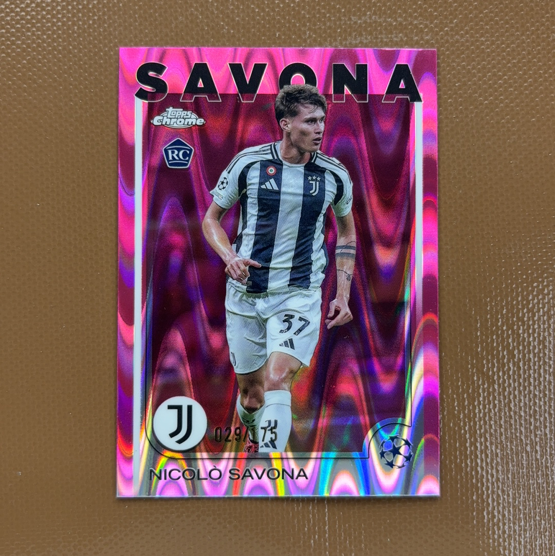 【佳佳代拍】2025 Topps Chrome 欧冠TC Nicolo Savona 尤文图斯 新秀 萨沃纳 029/175编 粉熔岩折 卡品如图 收藏必备(天下)