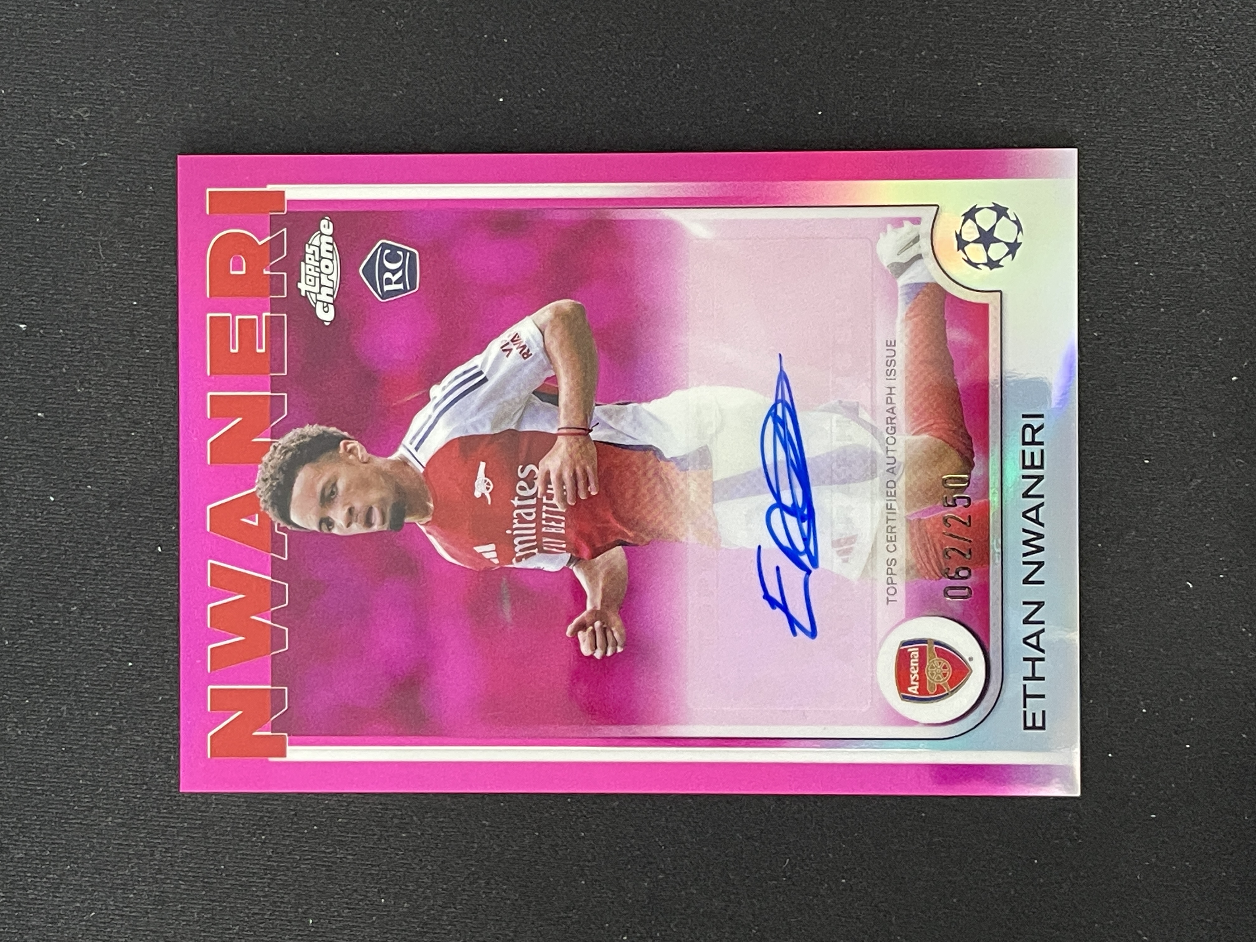 【南昌NOVA】2024-25 Topps Chrome Ethan Nwaneri RC 欧冠 阿森纳 新秀 伊森 恩瓦内里 粉折 折射 签字 特卡 062/250编 卡背印刷线如图3 L28yzy