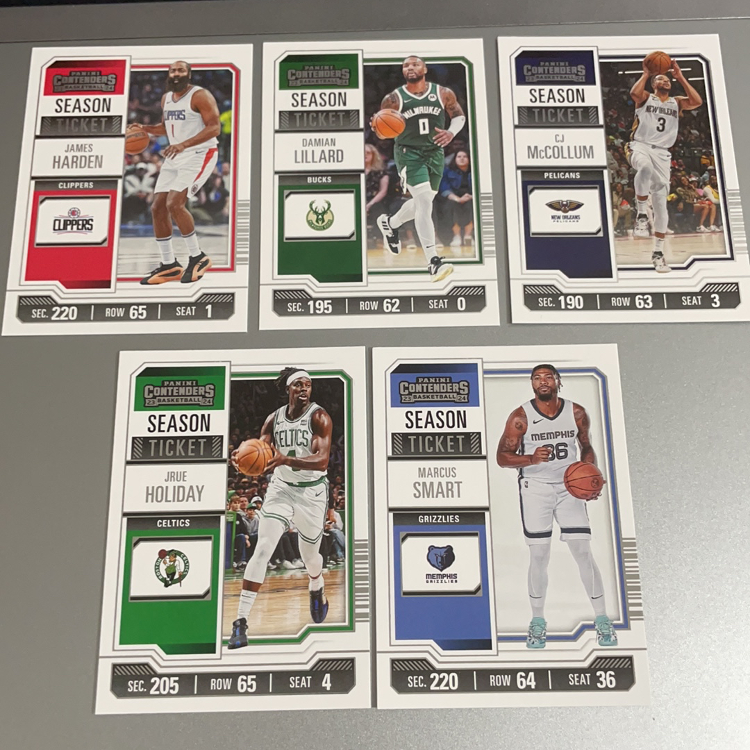 2023-24 Panini Contener 球票 哈登 利拉德 麦科勒姆 朱霍勒迪 斯玛特 base 5张lot 卡片品相见图