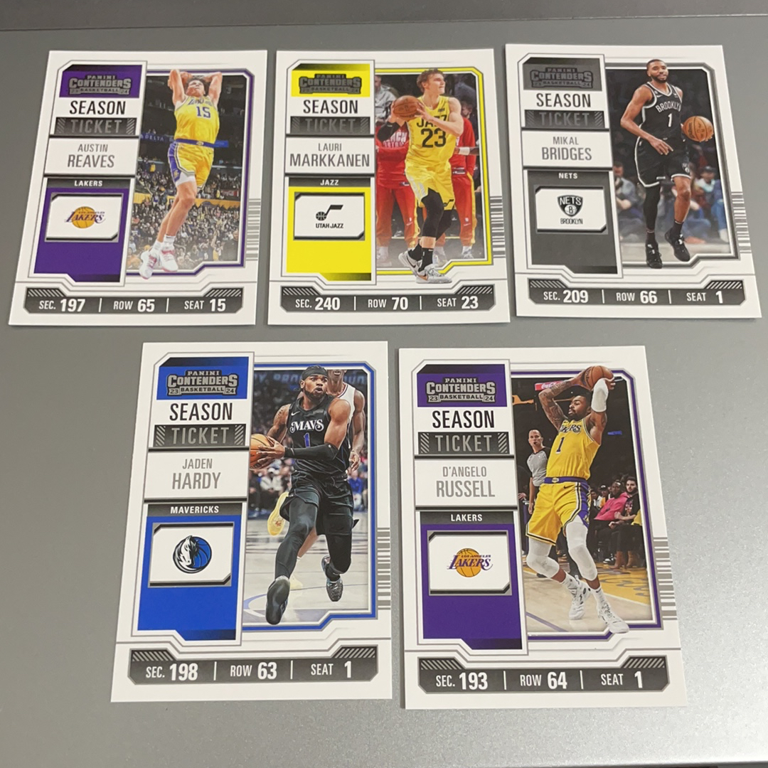 2023-24 Panini Contener 球票 里夫斯 马尔卡宁 布里奇斯 哈迪 拉塞尔 base 5张lot 卡片品相见图