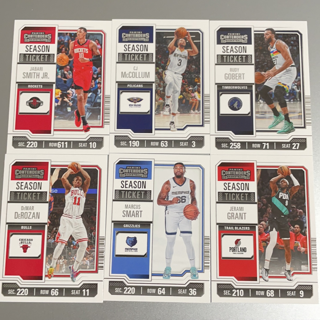2023-24 Panini Contener 球票 贾巴里史密斯 麦科勒姆 格贝尔 德罗赞 斯玛特 格兰特 base 6张lot 卡片品相见图