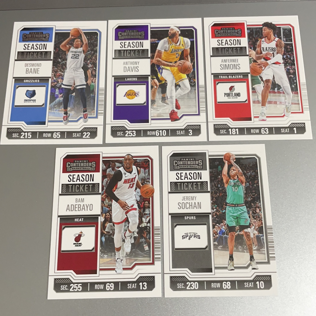 2023-24 Panini Contener 球票 巴恩 戴维斯 西蒙斯 阿德巴约 索汉 base 5张lot 卡片品相见图