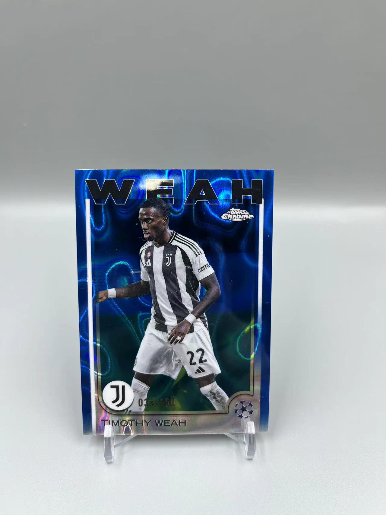 2024-25 Topps Chrome Timothy Weah 【灰灰代拍】全新 chrome欧战系列 尤文图斯 蒂莫西 维阿 /150编蓝熔岩折 王