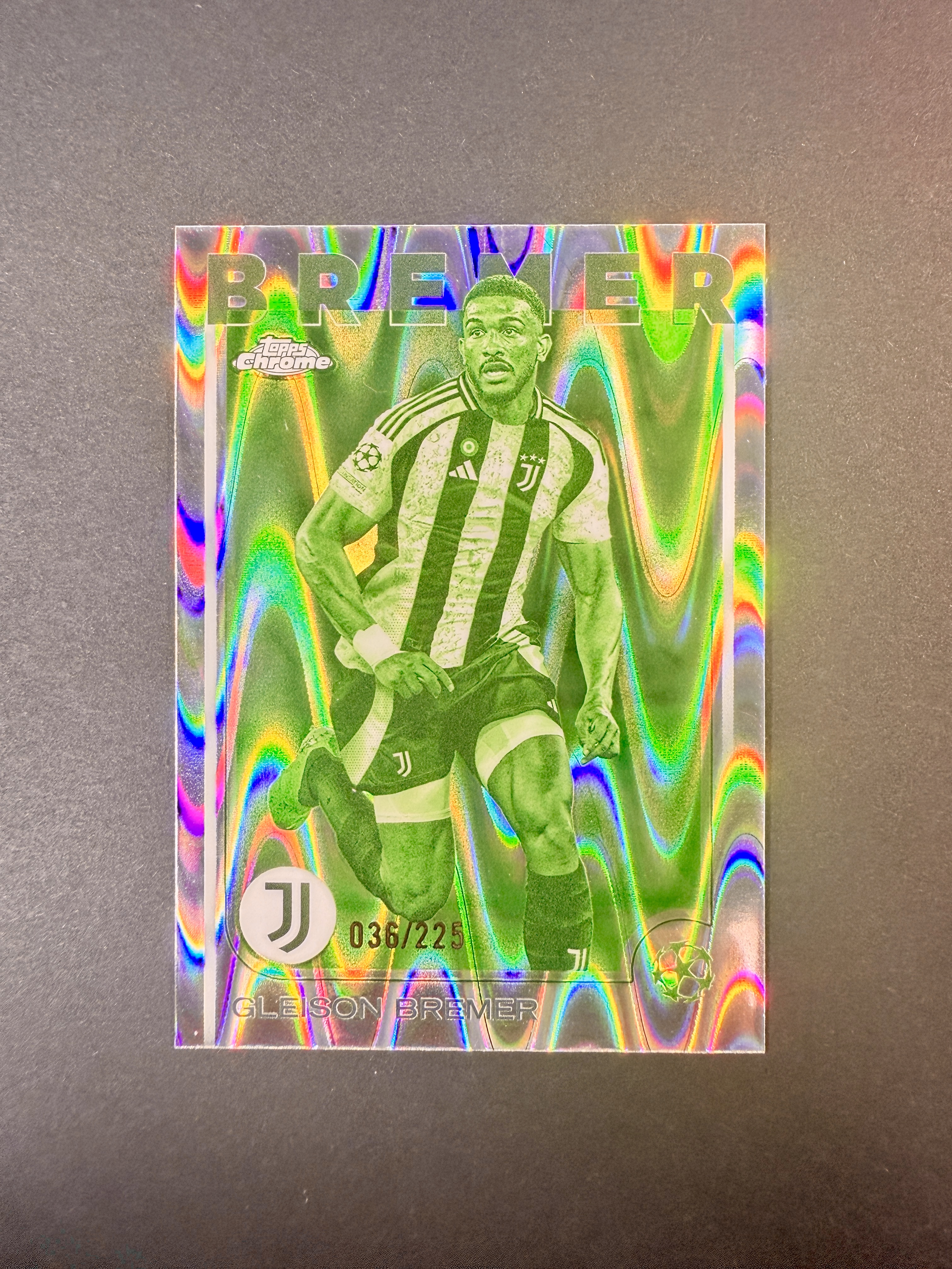 2025 Topps Chrome Gleison Bremer 【纯粹0手续】格雷森 布雷默 225编 荧光折 夜视波纹折 欧战TC 尤文图斯 铁卫 卡品如图(负