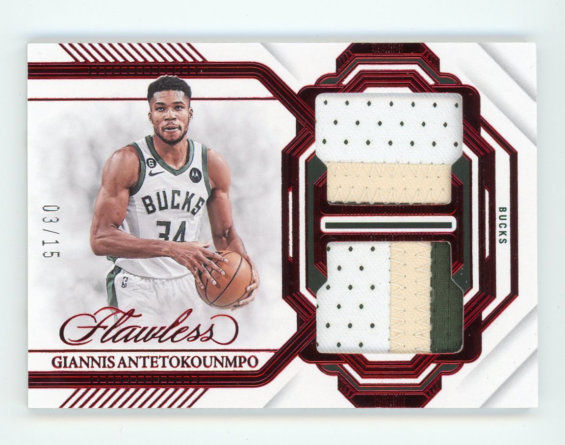 2022-23 Panini Flawless Basketball Giannis Antetokounmpo Dual Patch Red #'ed 03/15