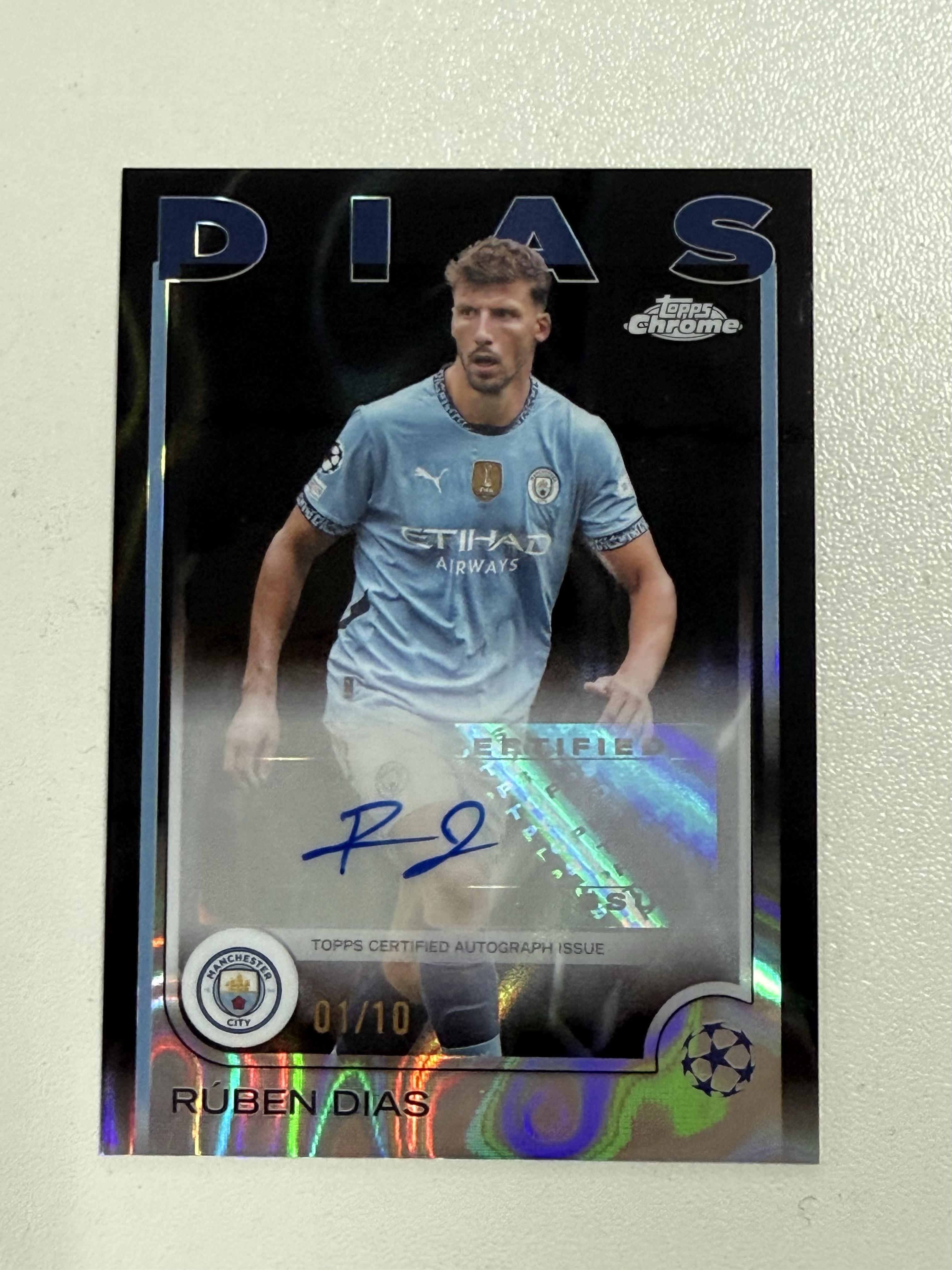 2024-25 Topps Chrome Rúben Dias 欧冠tc 鲁本 迪亚斯 01/10编 首编 对称编 黑折 签字 曼城 葡萄牙 约等于1/1