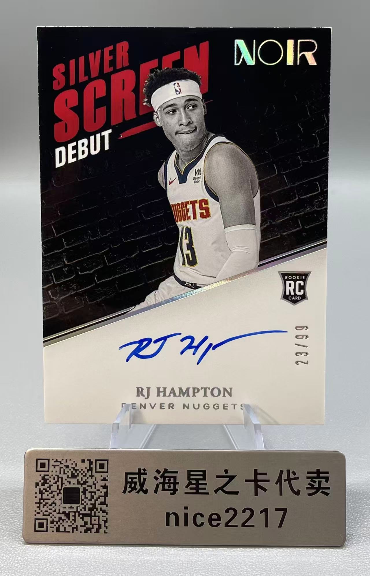 2020-21 Panini Noir RJ Hampton RC 【威海星之卡】掘金 RJ汉普顿 诺尔 23/99编 RA 新秀 首秀签 Debut签 卡签 签字 银闪版 折射 瑕疵看图KK1