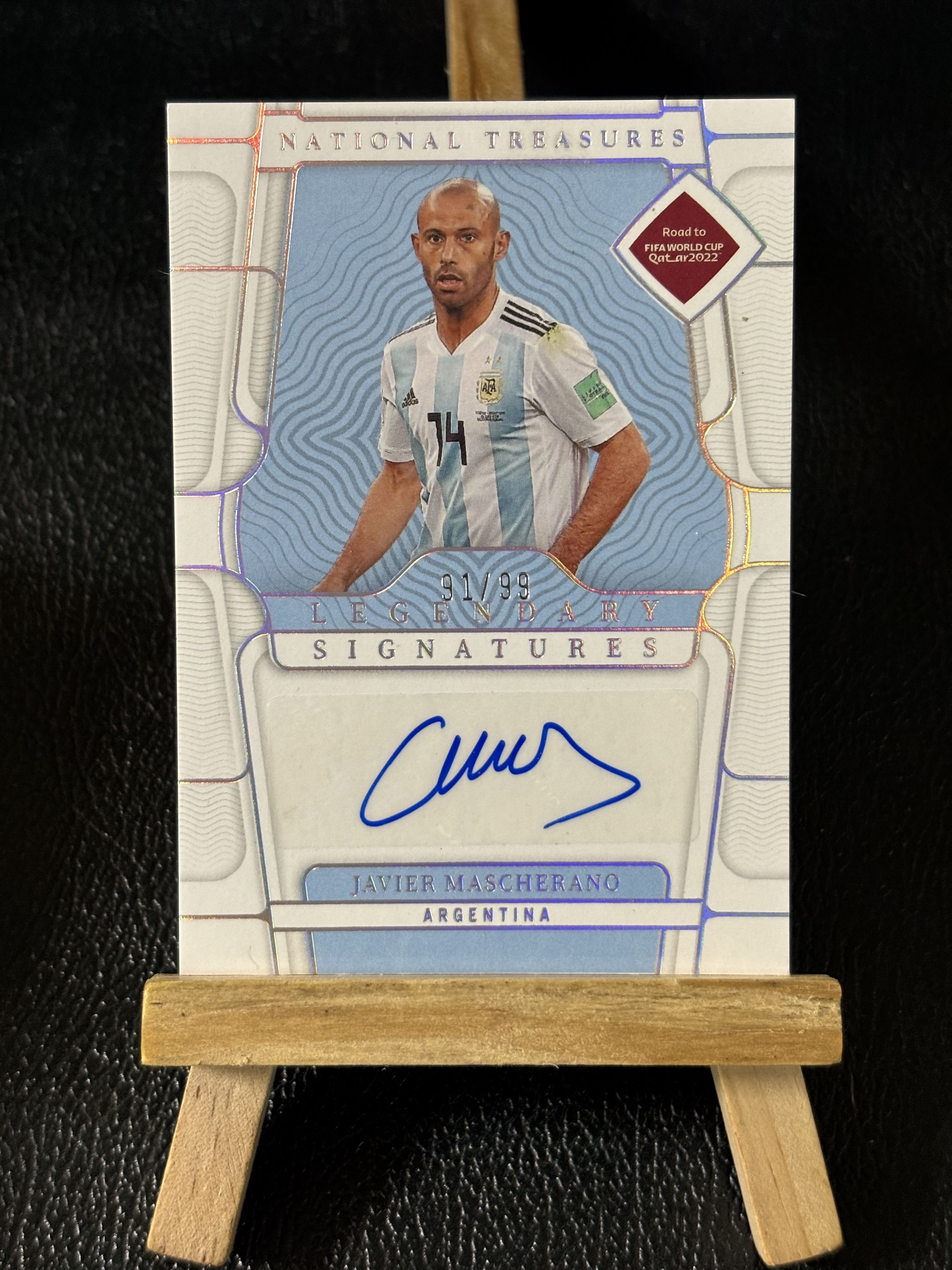 2022 Panini National Treasures Javier Mascherano 马斯切拉诺 阿根廷 巴萨 小马哥 99编 传奇 名宿 签字 完美签 世界杯 卡品如图 七七代卖