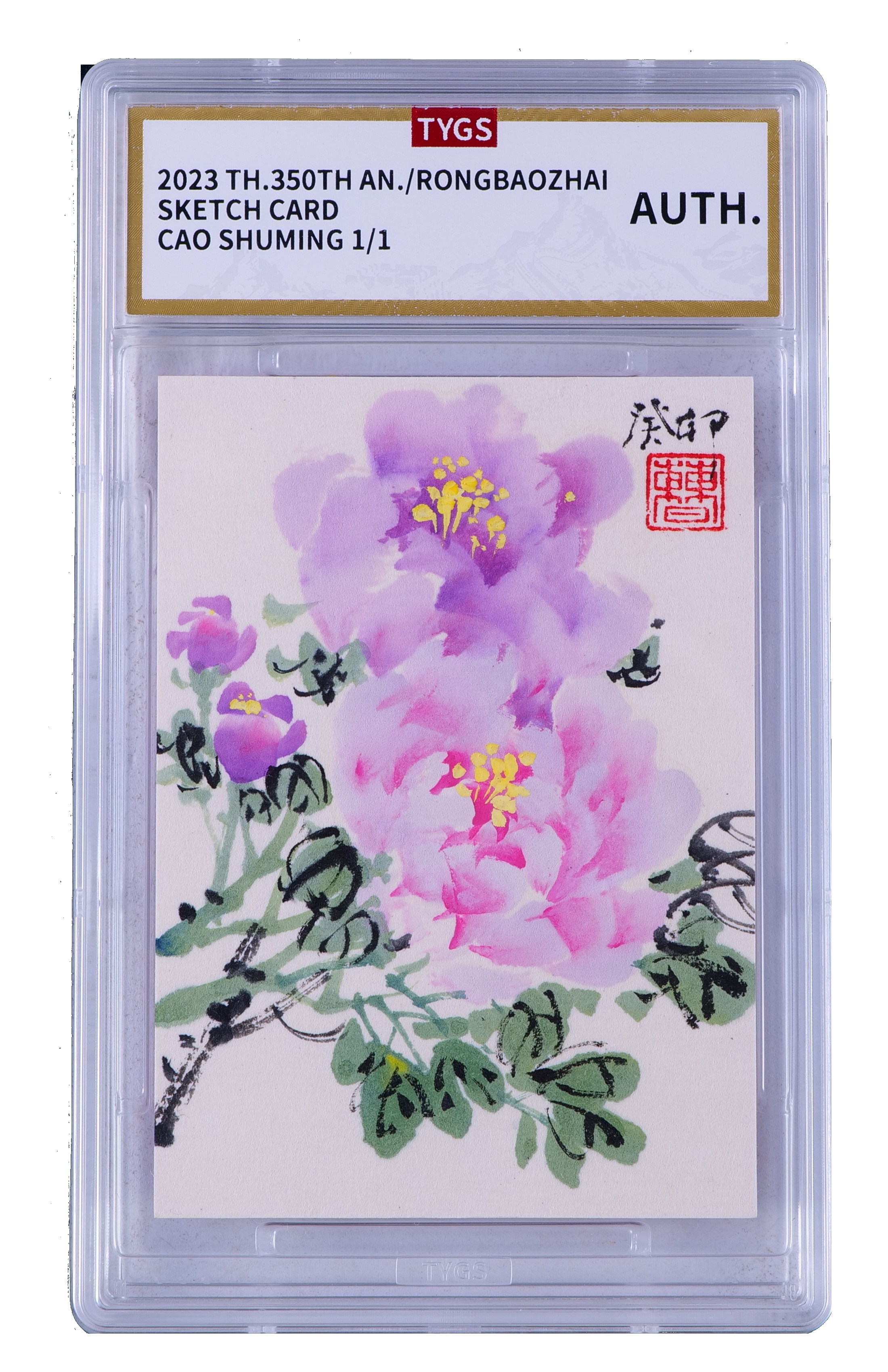 2025中版昆仑【茶-6.2】荣宝斋纪念收藏手绘卡 现代大师曹书铭 牡丹 1/1 编 天元鉴真 收藏必备 实卡精美
