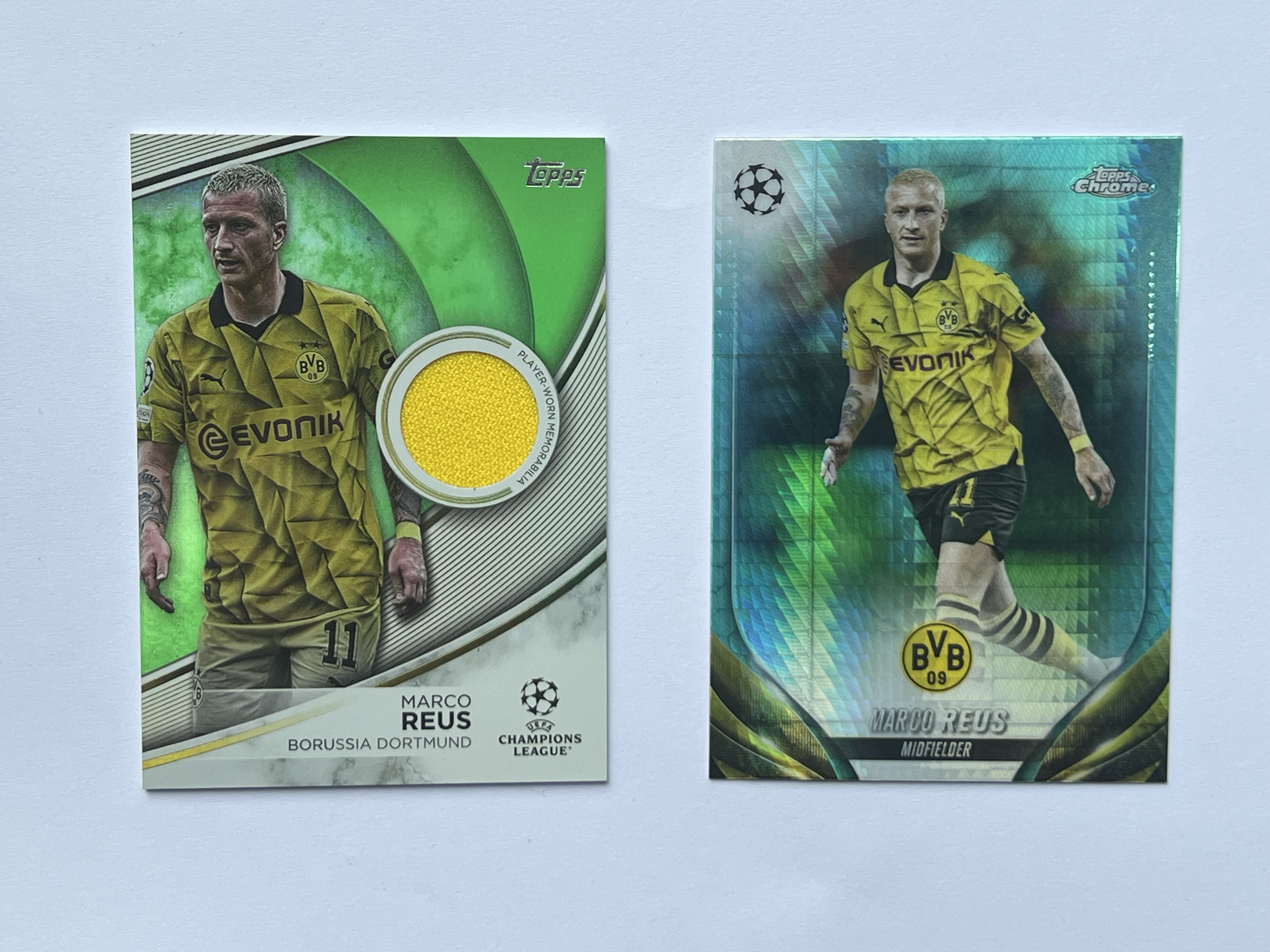 2023-24 Topps UEFA Champions League Marco Reus 罗伊斯 物料 199编 绿菱镜折 两张打包 多特蒙德