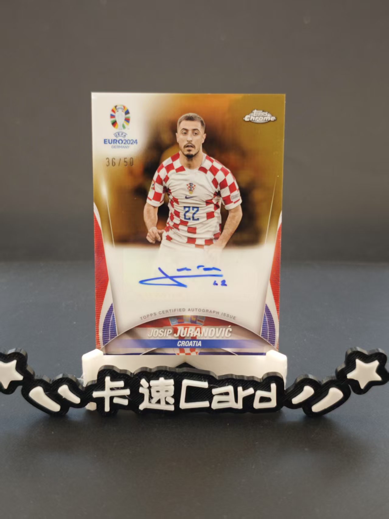 卡速拍卖 2024 topps chrome 欧洲杯克罗地亚 尤拉诺维奇(Josip Juranovic)签字 金折 36/50编 卡品墨迹如图-大优