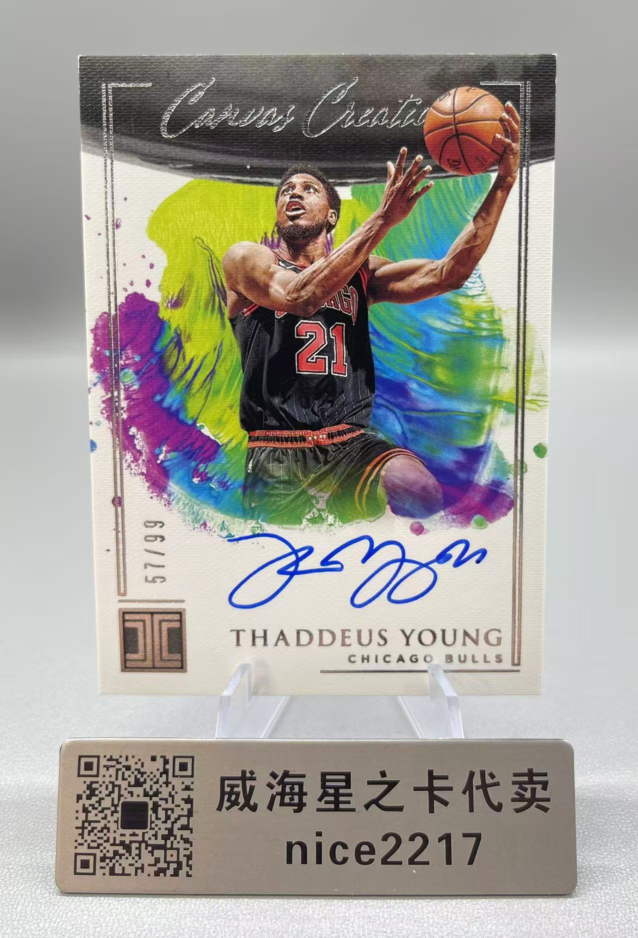2020-21 Panini Impeccable Thaddeus Young 【威海星之卡】公牛 赛迪斯扬 小真金 57/99编 漫画签 水彩签 卡签 签字 银平行 银版 瑕疵看图KK36