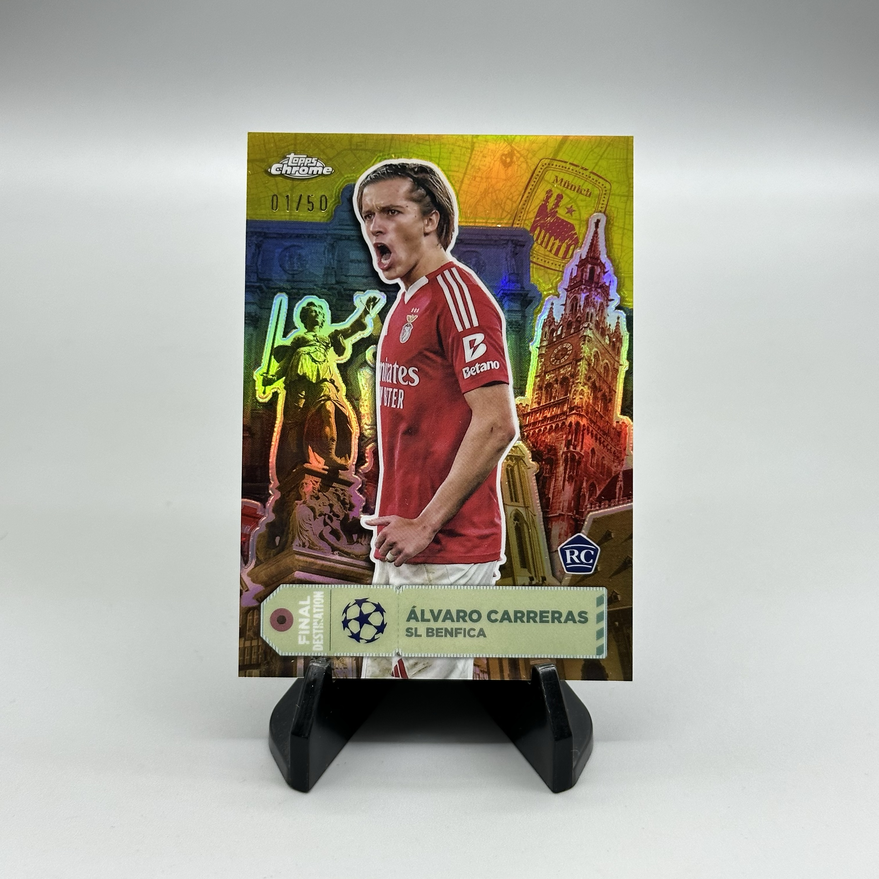 2024-25 Topps Chrome Alvaro Carreras RC 欧冠欧战TC 阿尔瓦罗 卡雷拉斯 新秀 本菲卡 最终目的特卡 01/50编 金折 微瑕 卡品如图 白胖子 【UD拍卖】