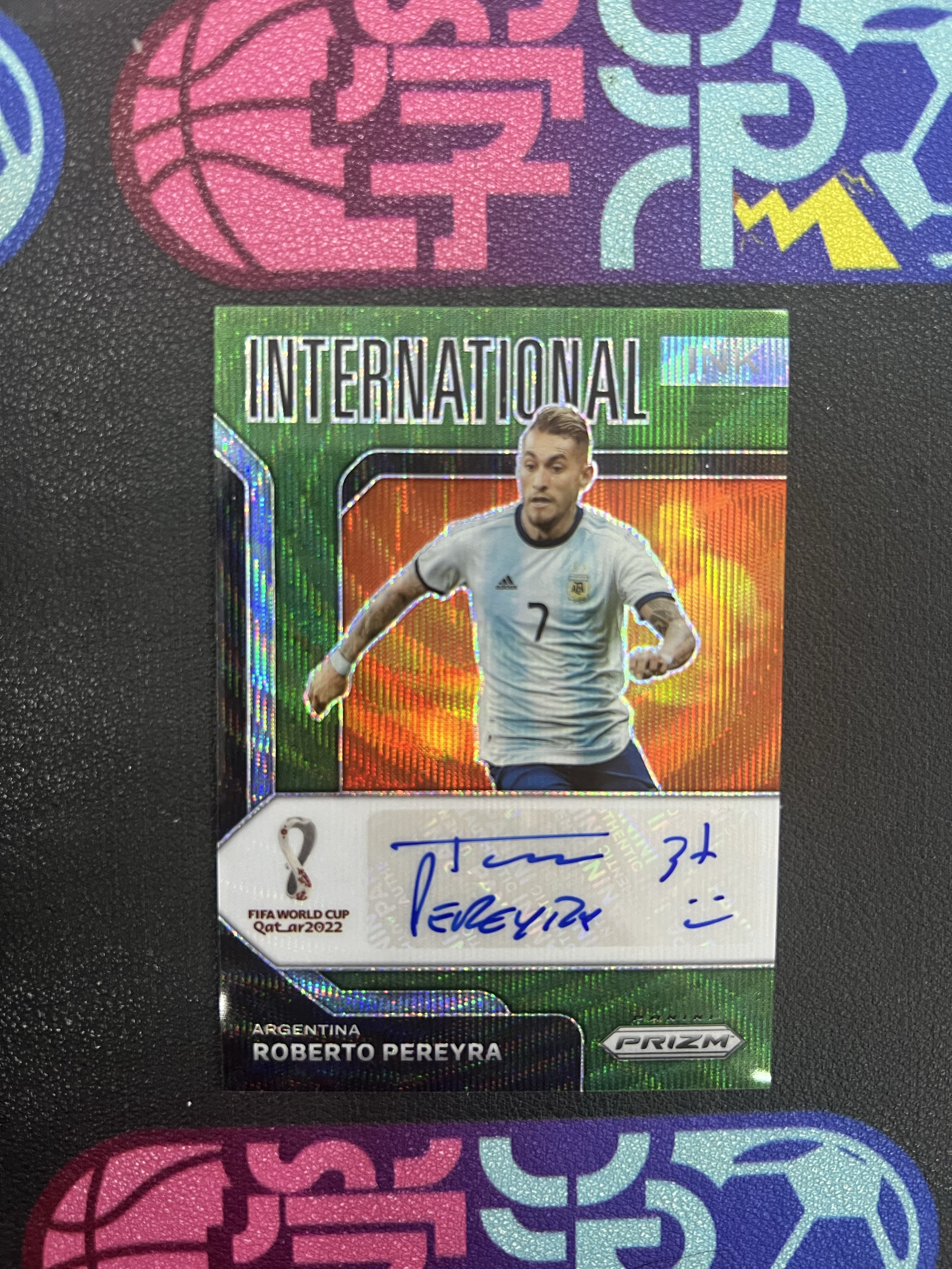 2022 Panini Prizm Roberto Pereyra 【学浪】世界杯 佩雷拉 签字 绿波纹 阿根廷 铭文签 稀有 印痕如图 熊