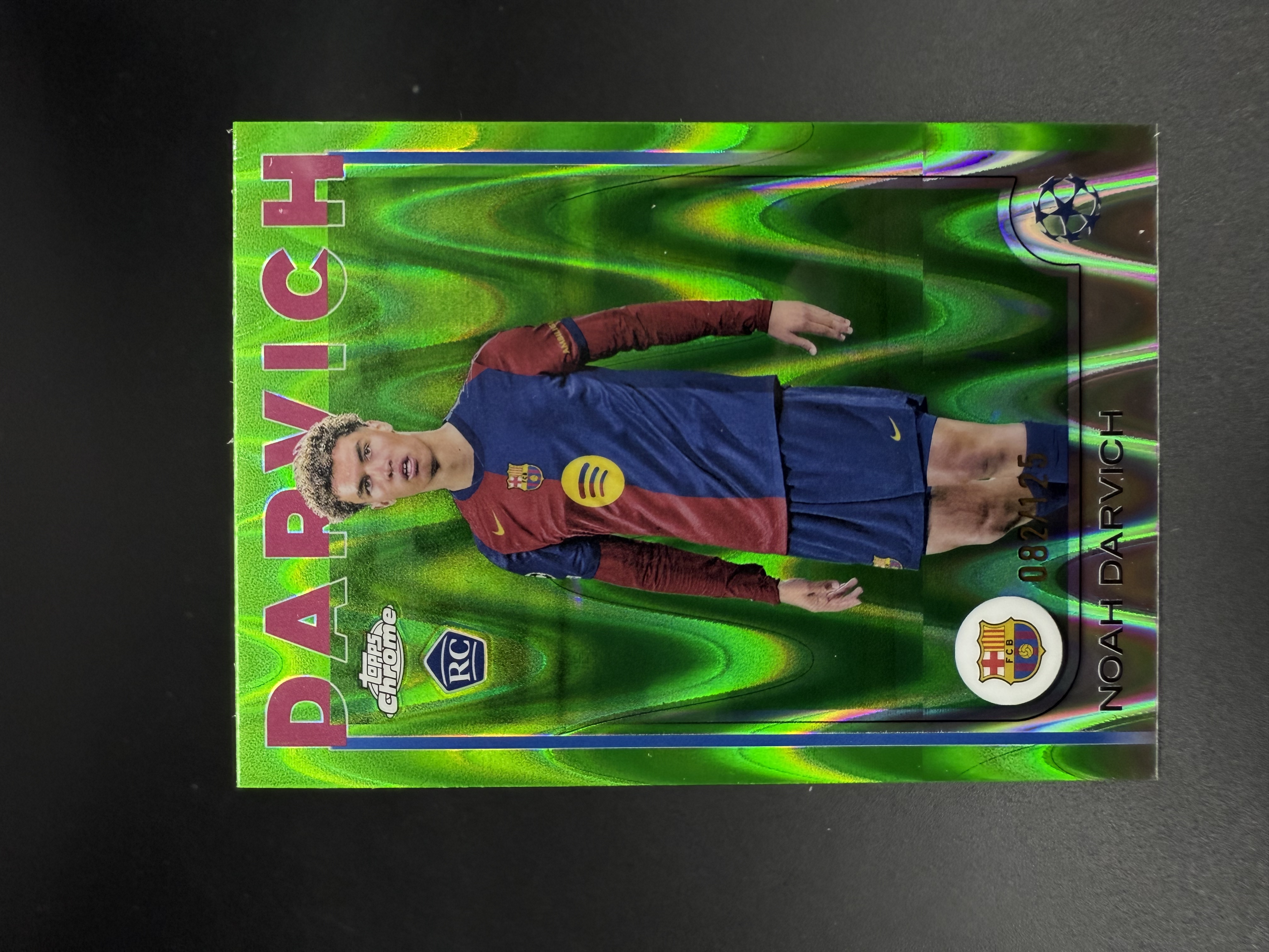 2025 Topps Chrome Noah Darvich RC 【湖水蓝拍卖】诺亚 达尔维奇 新秀 巴塞罗那 巴萨 欧战TC 荧光绿波纹折 折射 125编 拍前请阅读描述 小B