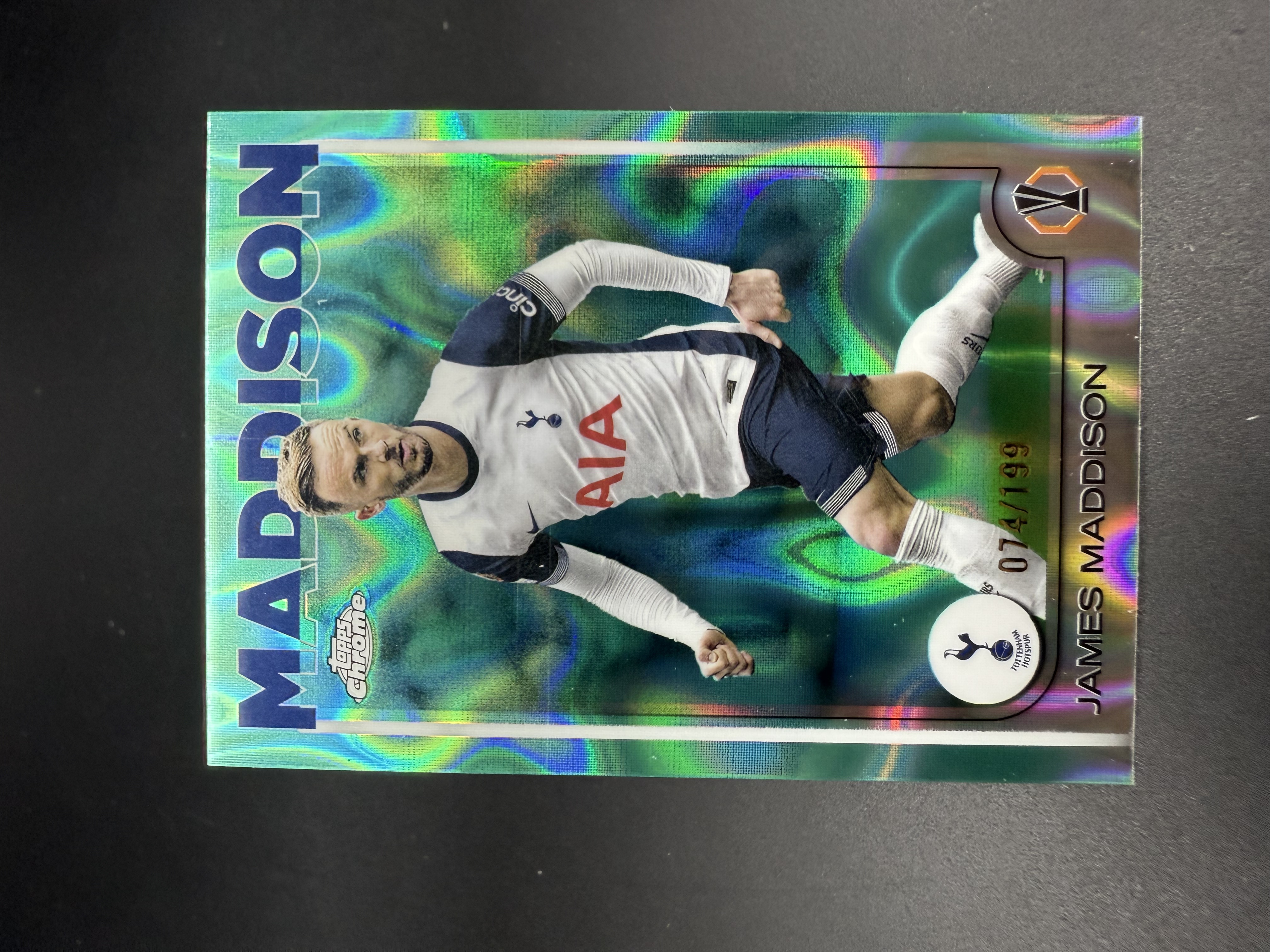 2025 Topps Chrome James Maddison 【湖水蓝拍卖】詹姆斯 麦迪逊 热刺 欧战TC 青熔岩折 折射 199编 拍前请阅读描述 Pillow
