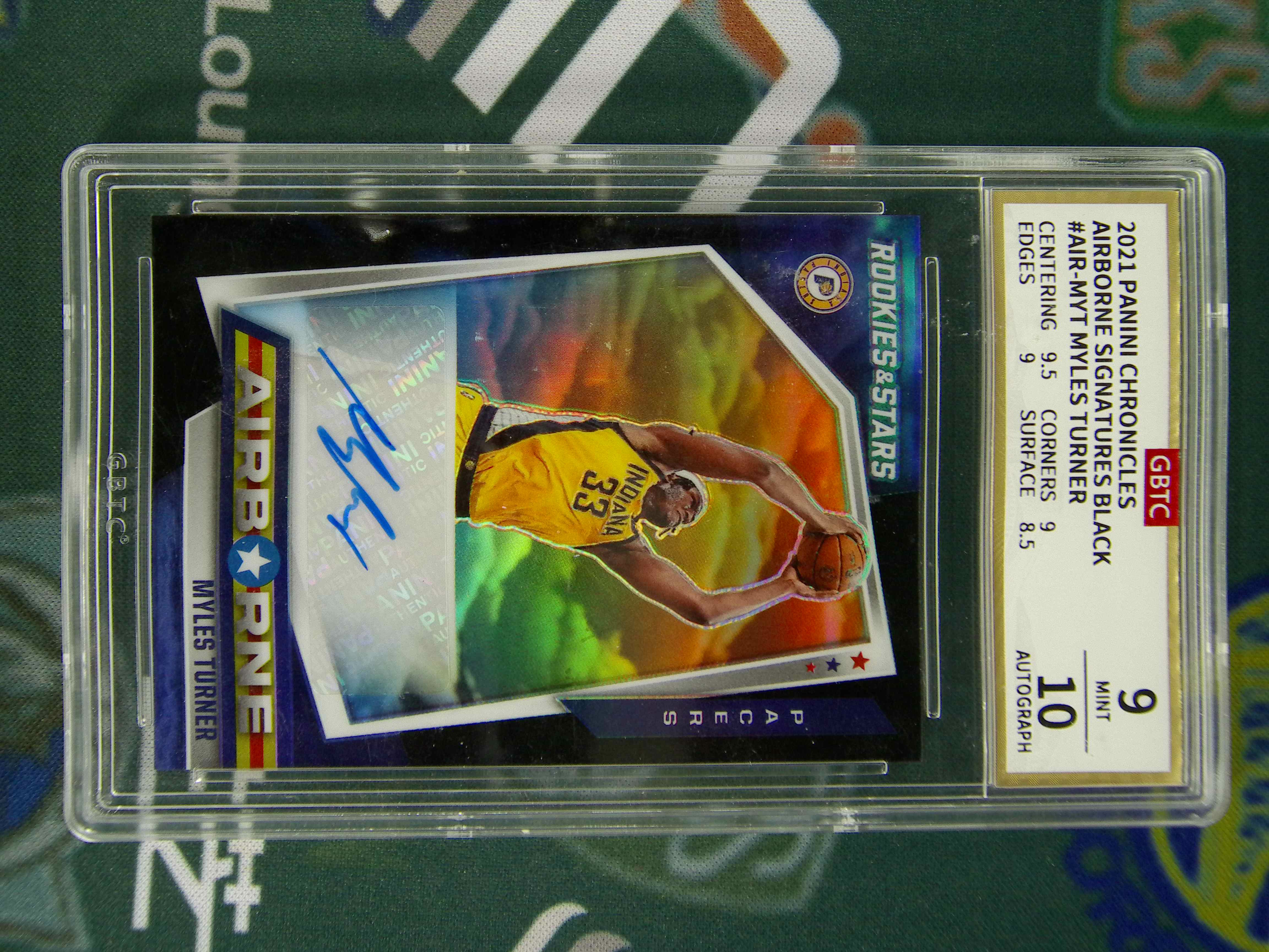 2021-22 Panini Chronicles Myles Turner 【LZK 5ZR613】 编年史 步行者 迈尔斯特纳 签字 1/1编 新秀复刻 黑折 公博9/10