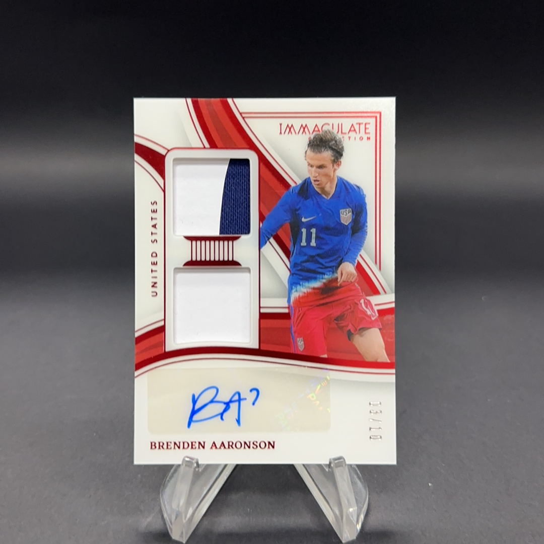 【AG拍卖】2023-24 Panini - Brenden Aaronson Immaculate 爱咪咪 USA 布伦登 阿隆森 金平行 03/10编 签字 贴签 双窗暴力PA 卡品通行 矻笛