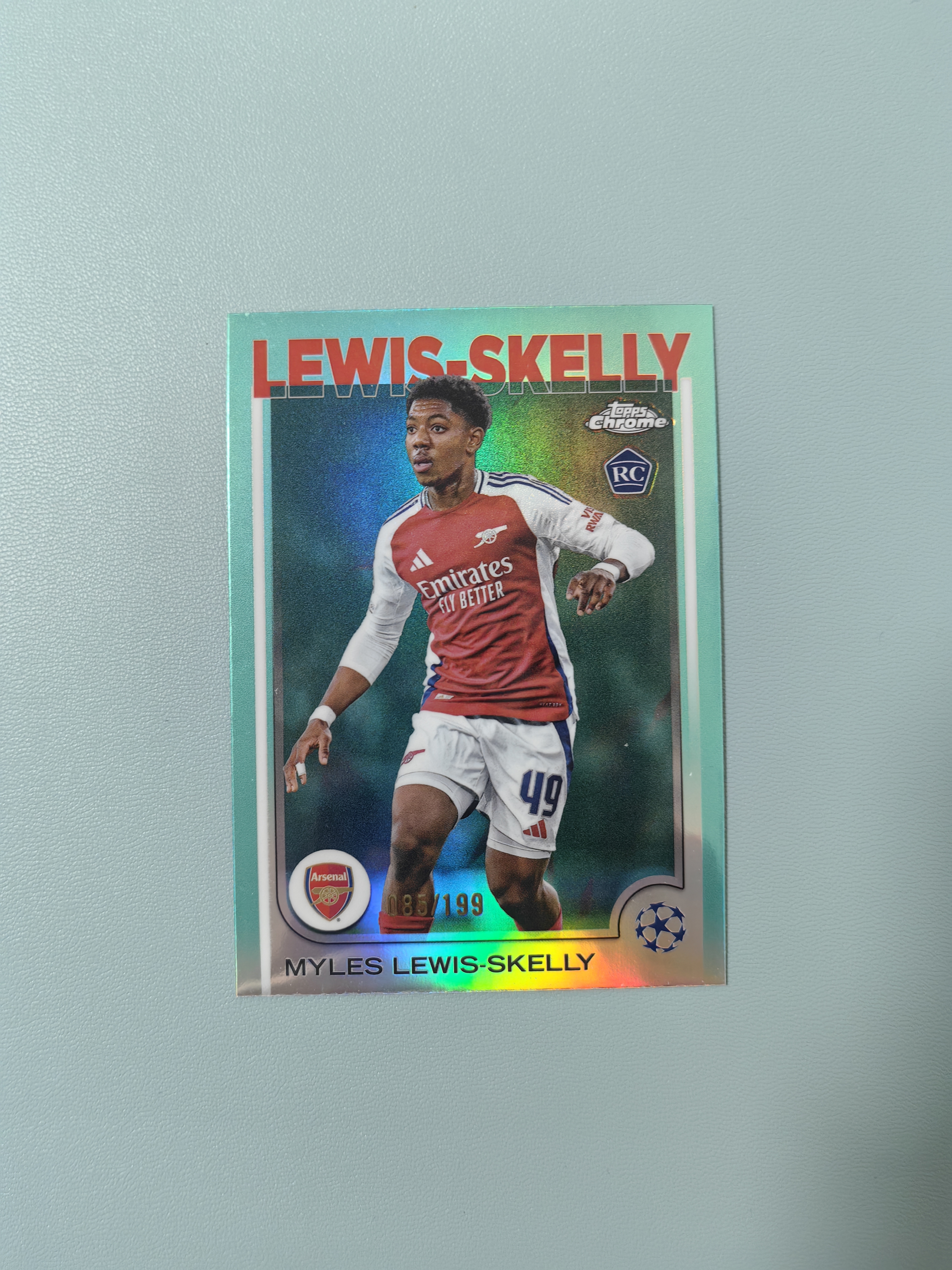 2025 Topps Chrome Myles Lewis-Skelly RC 欧冠 阿森纳 刘易斯 斯凯利 新秀 085/199编 水蓝折 折射 收藏必备 卡品如图 44