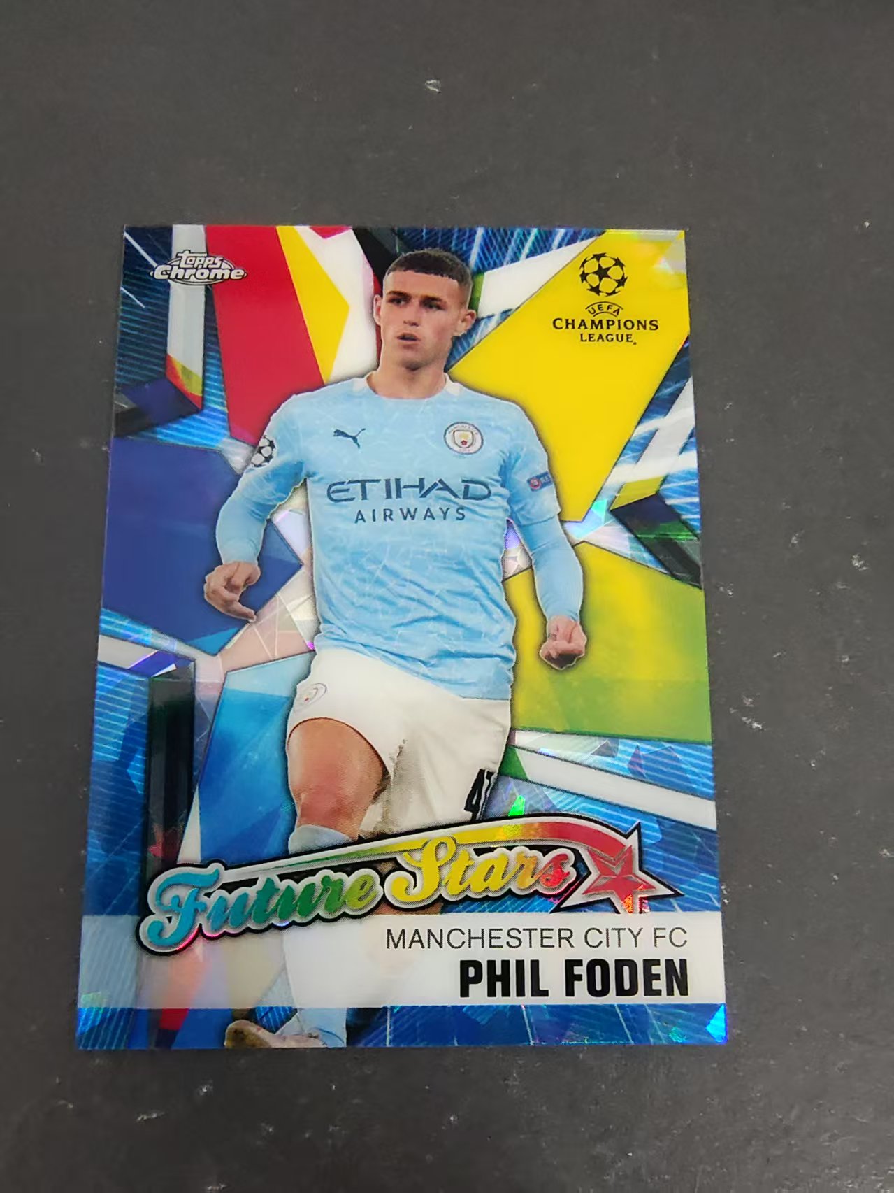 【可合并,不累计】2021 Topps Chrome Phil Foden 欧冠蓝宝石 曼城 太子 福登 未来之星 特卡 碎冰折