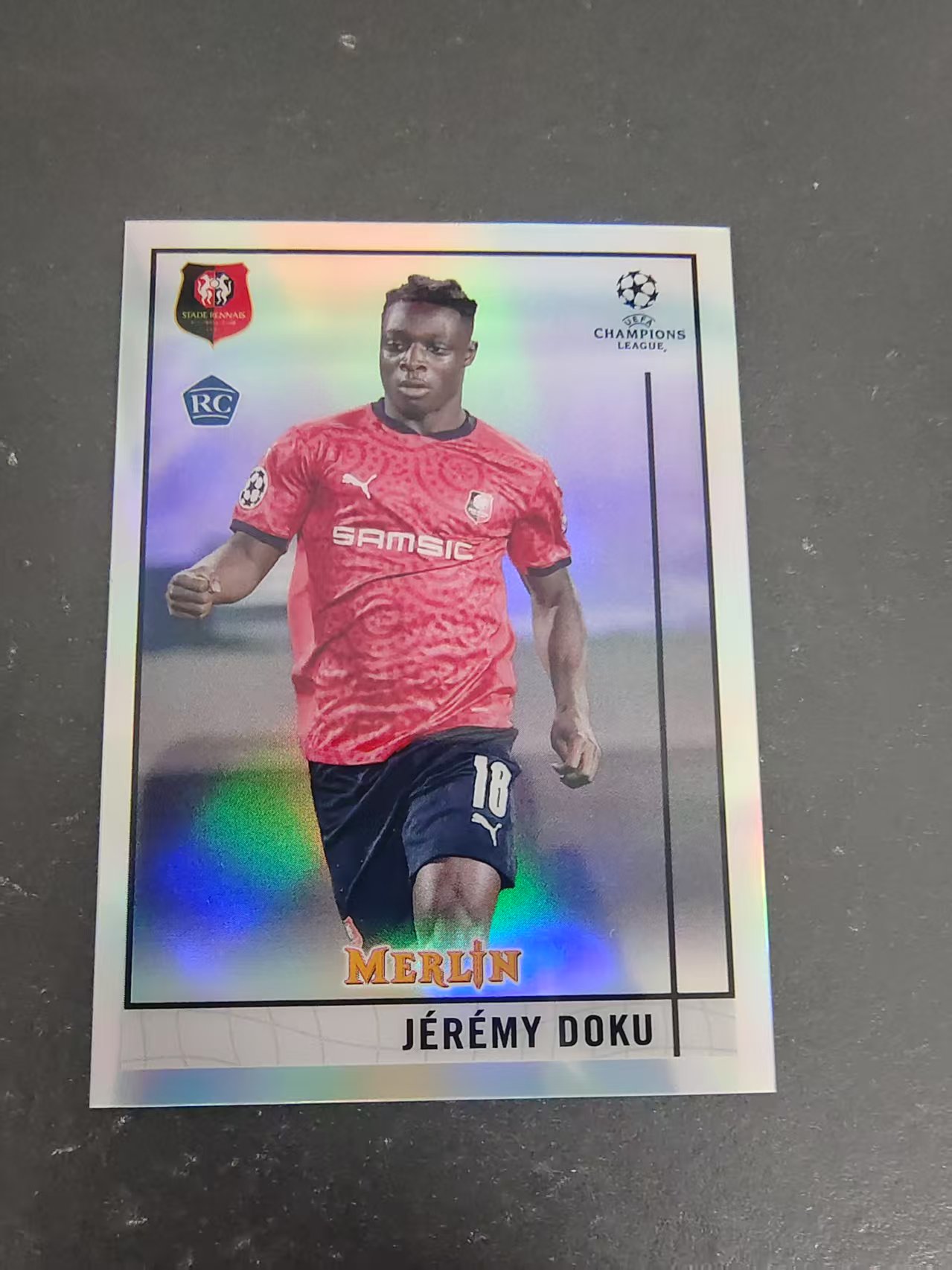 【可合并,不累计】2021 Topps Merlin chrome Jeremy Doku 多库 雷恩 欧冠 梅林 银折 RC 新秀 #64 边角瑕疵