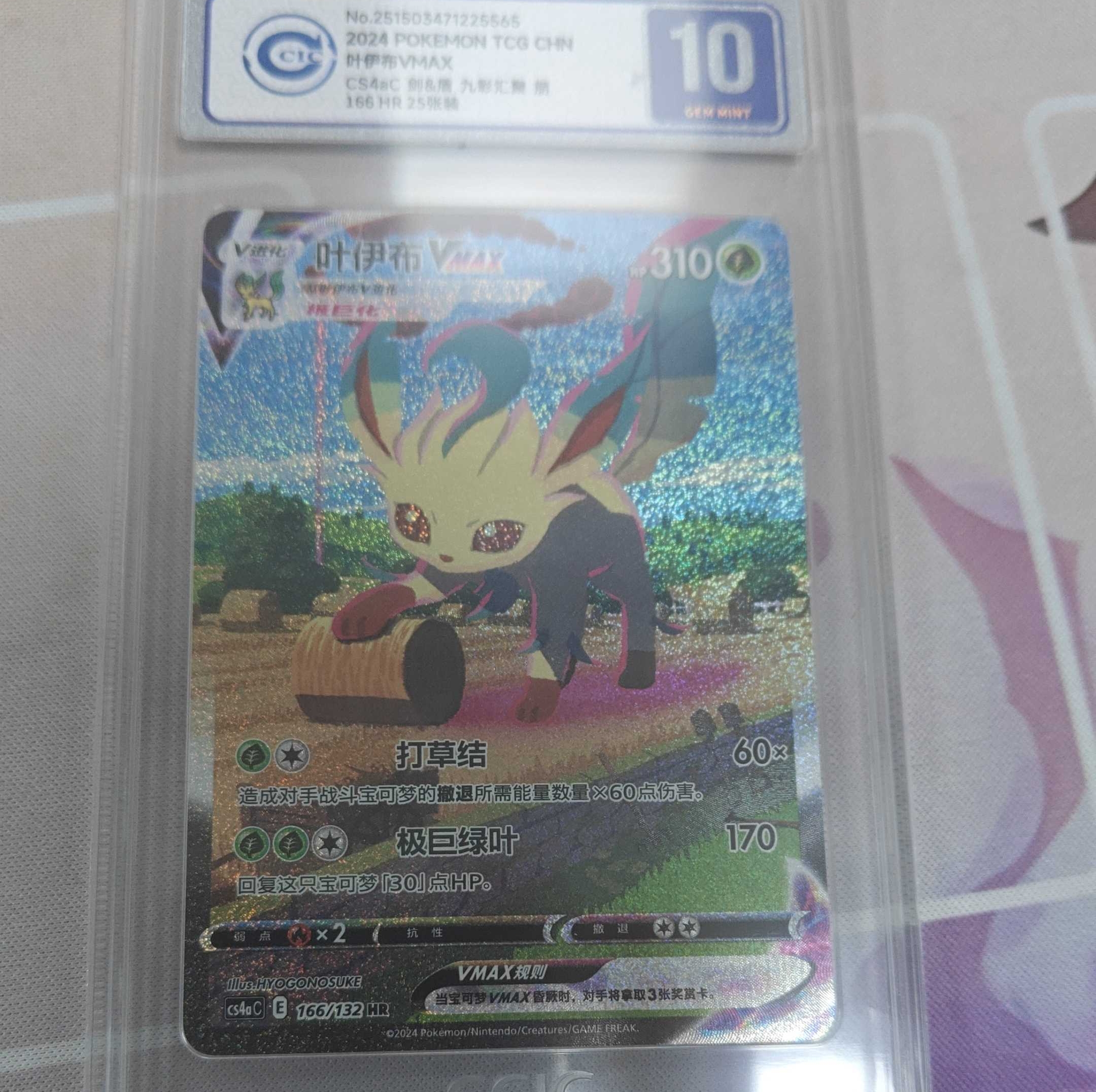 2024 Pokemon TCG 剑&盾 九彩汇聚 朋 宝可梦简中 叶伊布VMAX 166 HR CCIC 10分美品 chs