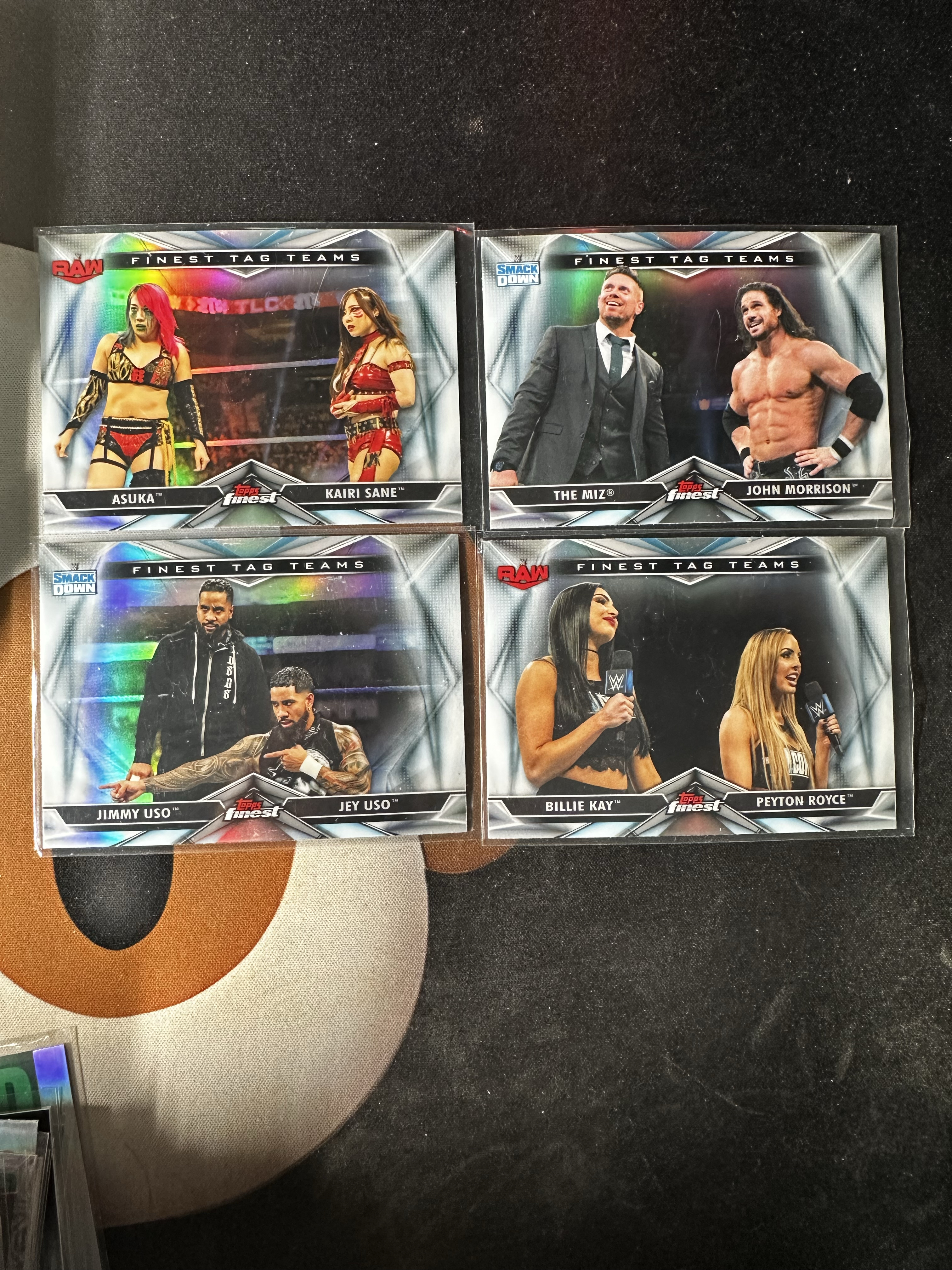 2021 Topps Chrome Kairi Sane 摔跤 WWE 歌舞伎战士 标志双子 m&M 乌索兄弟 宝成海里 明日华 米兹 莫里森 杰乌索 吉米 乌索 双人组合特卡 银折 折射 4张打包F