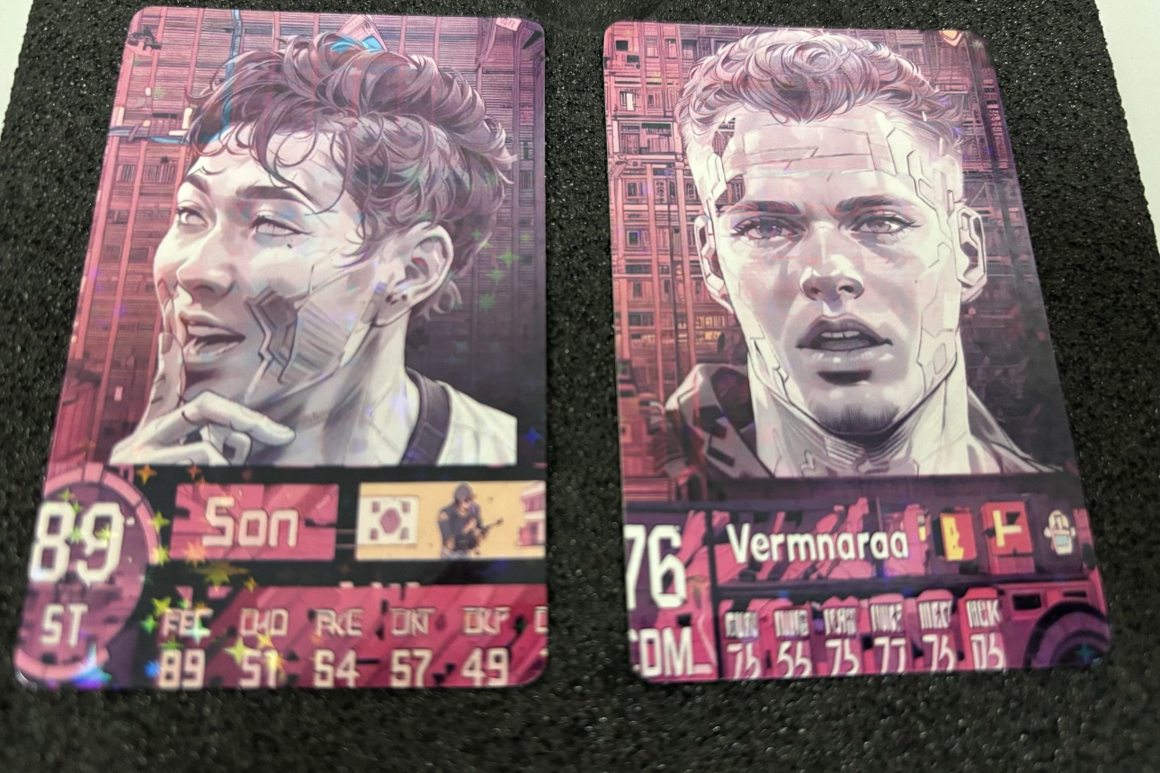 【古力查维度卡】2025 赛博朋克系列 动漫风格小卡 孙兴民 热刺 韩国 费尔梅伦 布莱顿 莱比锡红牛 比利时 3寸加厚圆角小卡 画师:孝高如水 卡品如图 收藏必备 实卡精美 品相自观 拍前请阅读详情